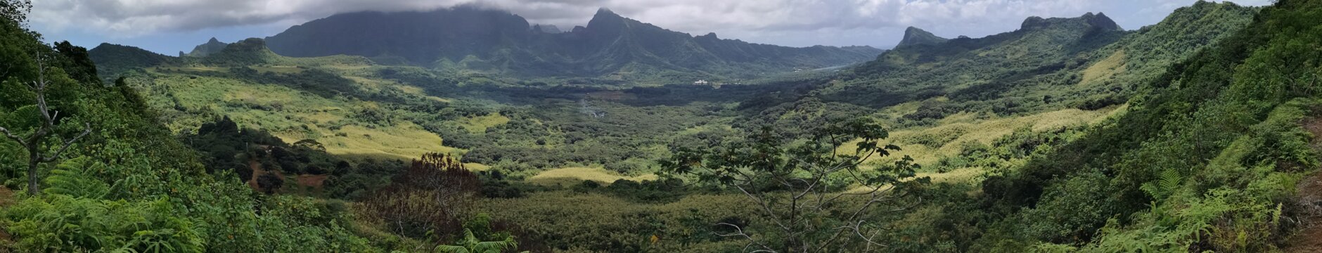 The crest separates 2 craters; on the right: Faaroa valley, a caldera formed after one of the craters collapsed. Faaroa valley. Faaroa valley. Faaroa valley Faaroa valley. Faaroa valley. Faaroa valley. The crest. The crest. The crest. The crest. The crest. GabbrosCrossing road Labels
