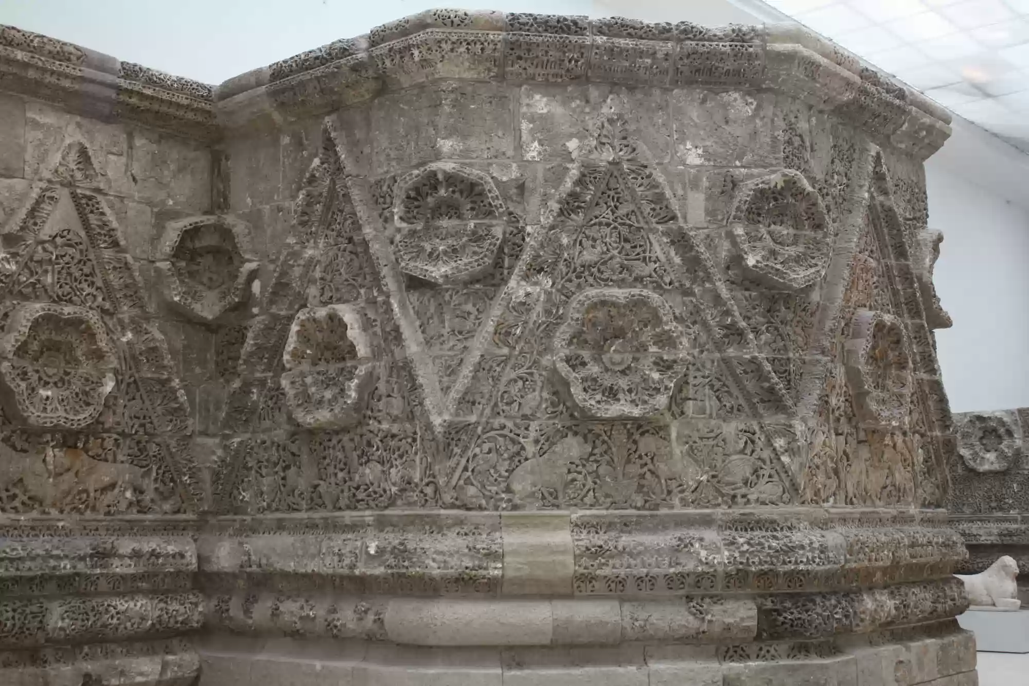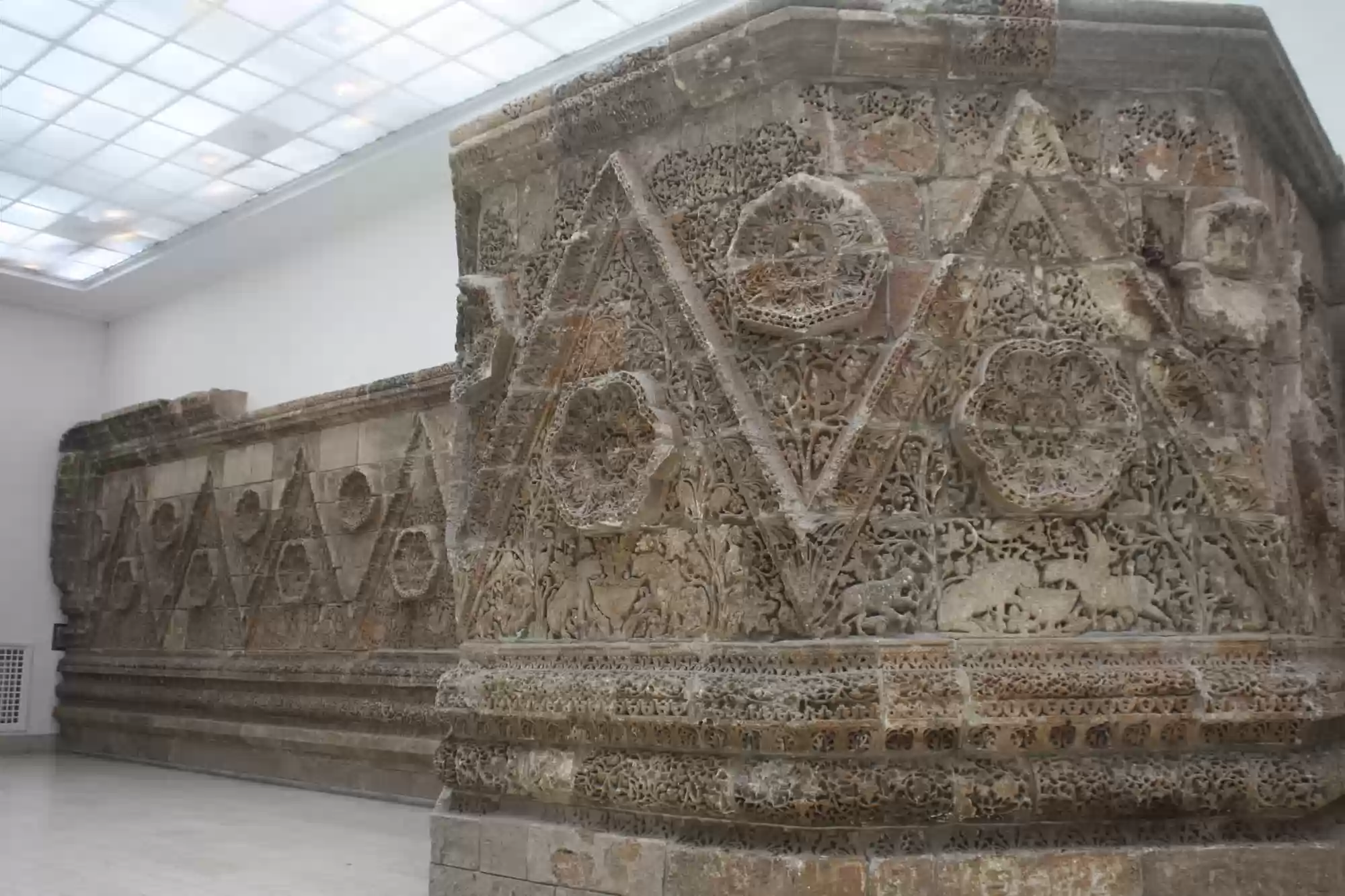 Desert palace of Mshatta, Jordan, 8th century. Desert palace of Mshatta, Jordan, 8th century. Desert palace of Mshatta, Jordan, 8th century. Samarra (now in Iraq): wall decoration made of carved stucco, 9-10th century. Ivory horn, 11-12th century. Prayer niche, Iran, 1226. Prayer niche, Iran, 1226. Prayer niche, Turkey, late 13th century. Cupola from the observation tower of the Ladies tower (torre de las damas), Granada Alhambra, 14th century, Cupola from the observation tower of the Ladies tower (torre de las damas), Granada Alhambra, 14th century, Iranian carpet, late 16th century. Iranian carpet, late 16th century. Turkish carpets, 16-17th centuries. Aleppo room, early 17th century wood panels. The owner of the house was Christian. Aleppo room, early 17th century wood panels. The owner of the house was Christian. Encounter at the fountain, India, 1st half of the 18th century. Mesopotamia Labels