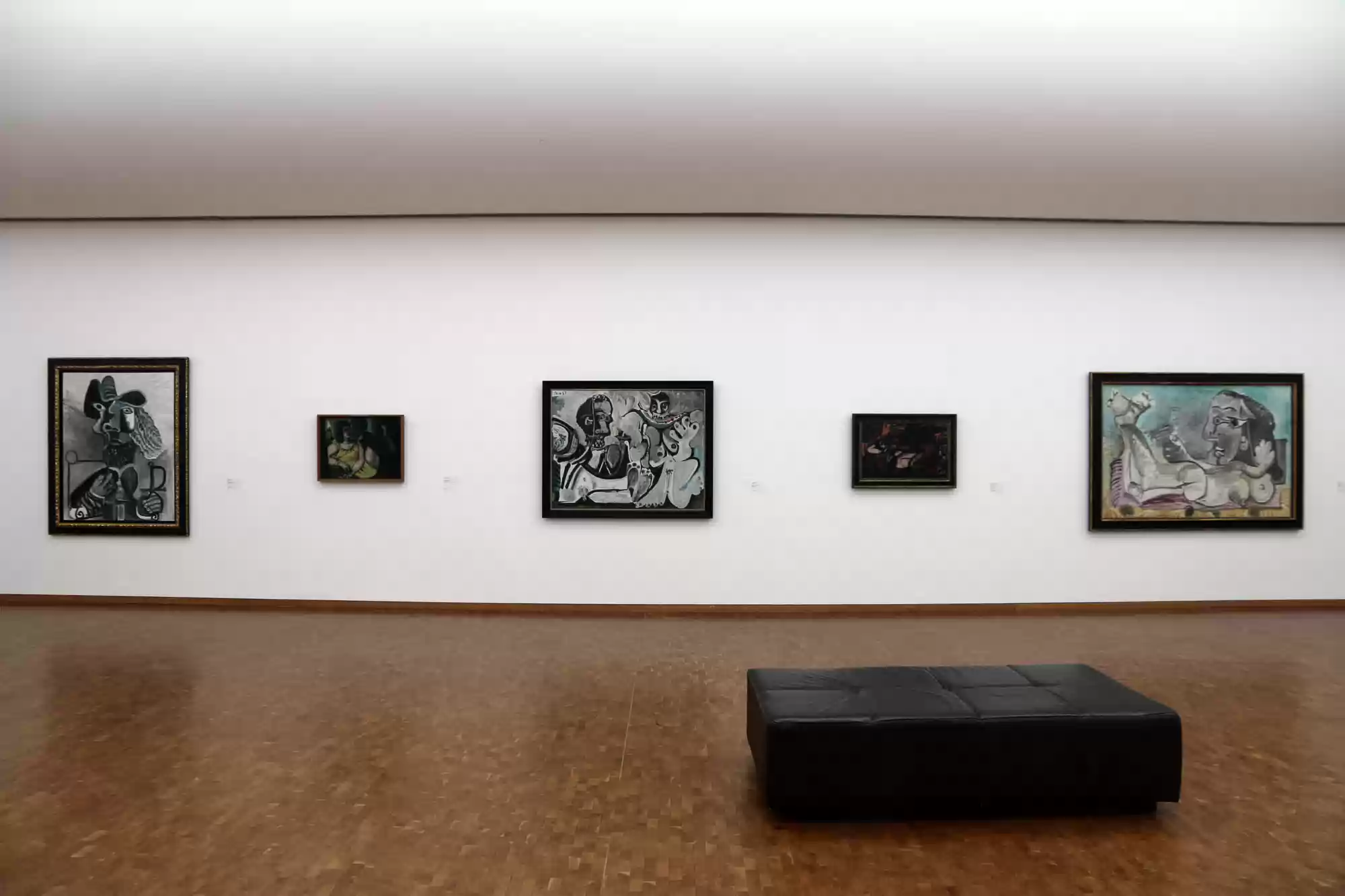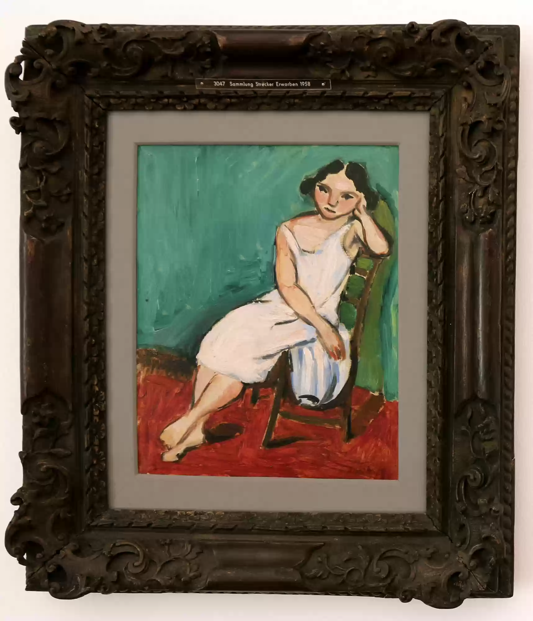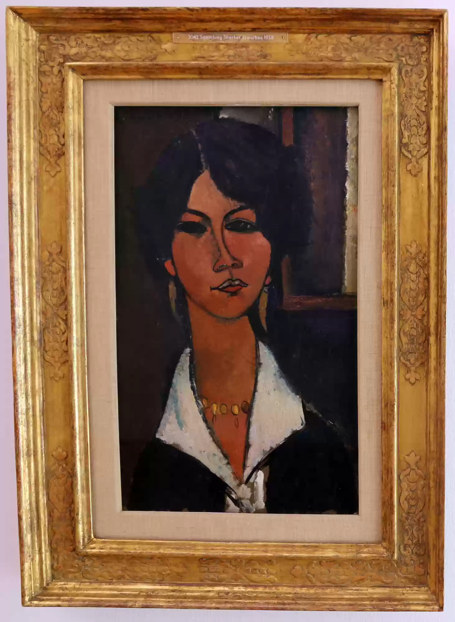 Ludwig museum building, 1986. James Rosenquist, Star Thief, 1980. Mark Rothko, Earth and Green, 1955. Domenico Gnoli, Profile of a shoe, 1956. Modigliani, The Algerian woman, 1917. Picasso, Café in Montmartre, 1901. André Derain, View of Saint-Paul-de-Vence, 1910. Henri Matisse, Seated girl, 1909. Picasso. René Magritte, The giant, 1929. Salvador Dali, The station of Perpignan, 1965. Alberto Giacometti, The nose, 1947. CathedralRomanesque churches Labels