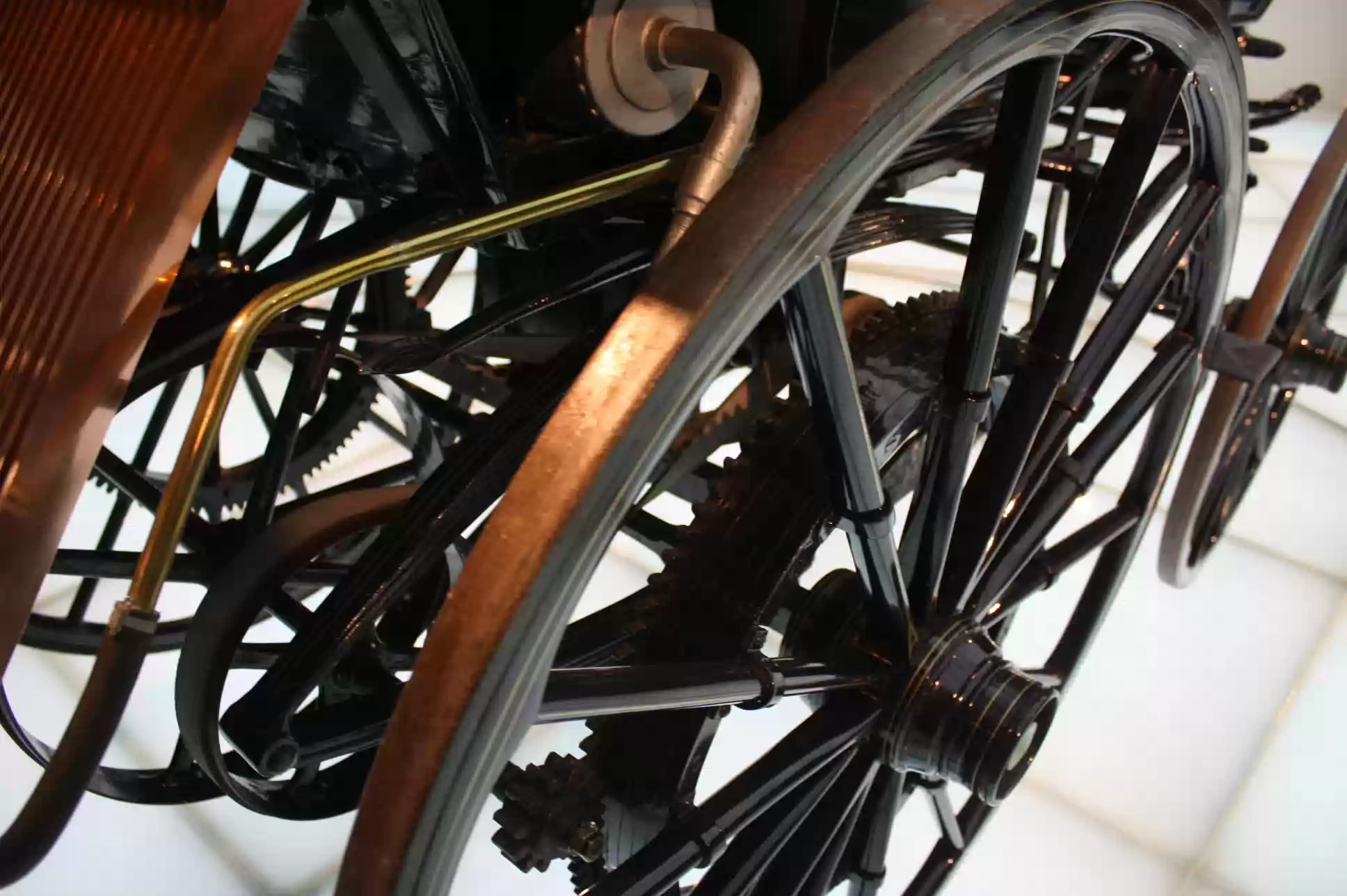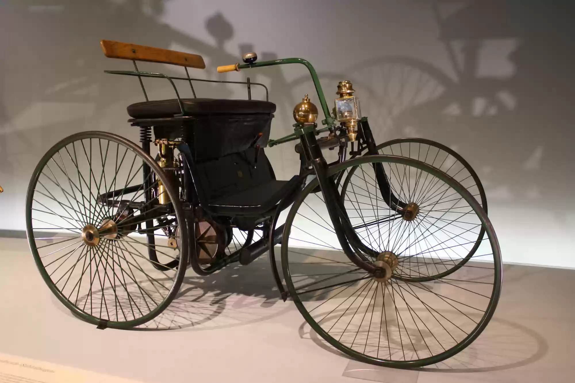 Daimler motor-quadricycle "Stahlradwagen", with the 1.5 HP V2 engine, 1889, designed by Daimler and Maybach.