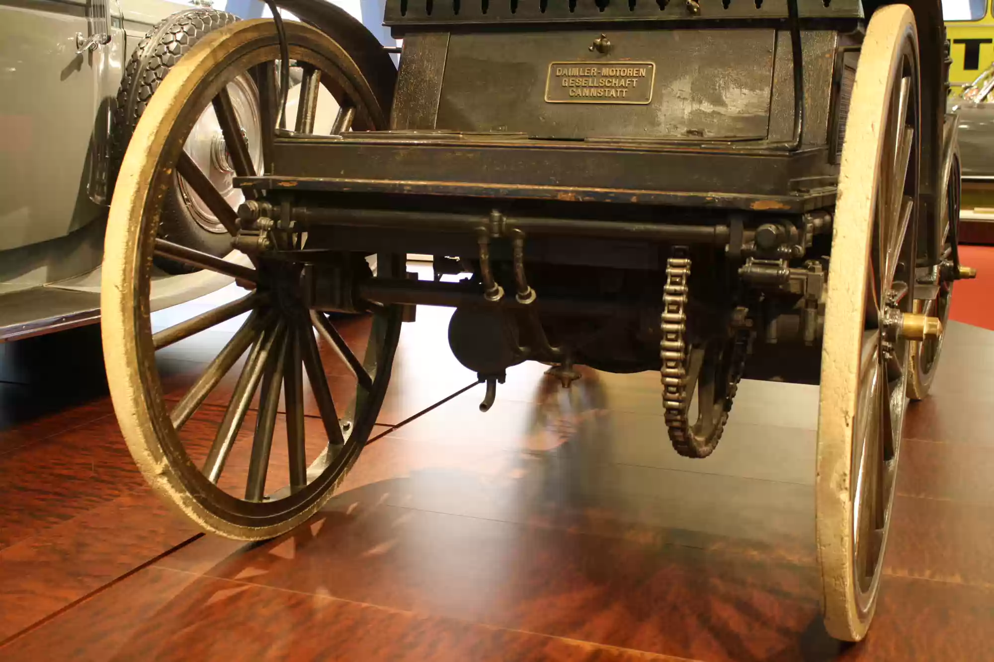 Daimler motor-strassenwagen, 1892, 2 HP, 762 cm3, 22 km/h, produced until 1895 (12 units).
