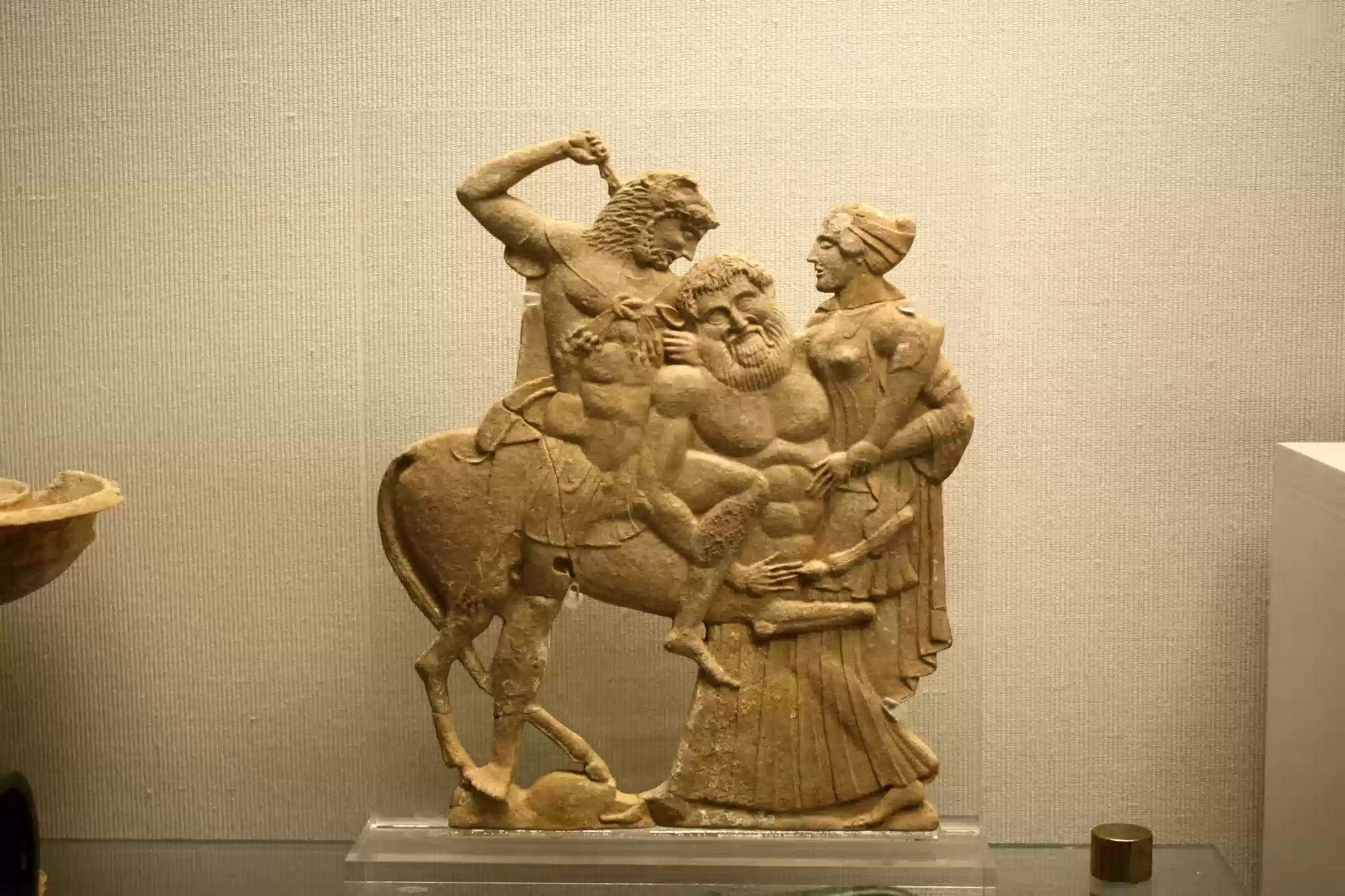 Melian relief with a scene of Hercules killing the centaur Nessos. Just before the middle of the 5th century BC, from a grave at Troizen.