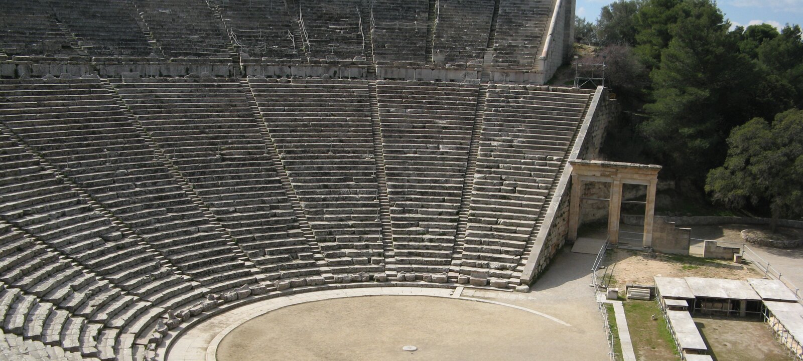 Theater of Epidaurus, 4th century BC, capacity 15000. It is noticeable for its exceptional acoustics: regular voice emitted at the center point of the stage…