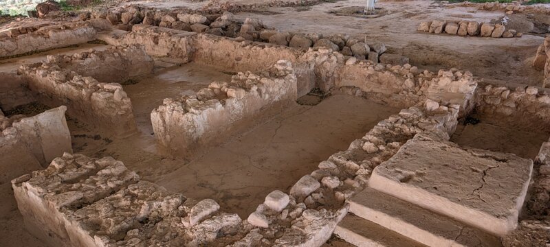 Inner courtyard. Traces of cups preserved during the fire that destroyed the palace are still visible.