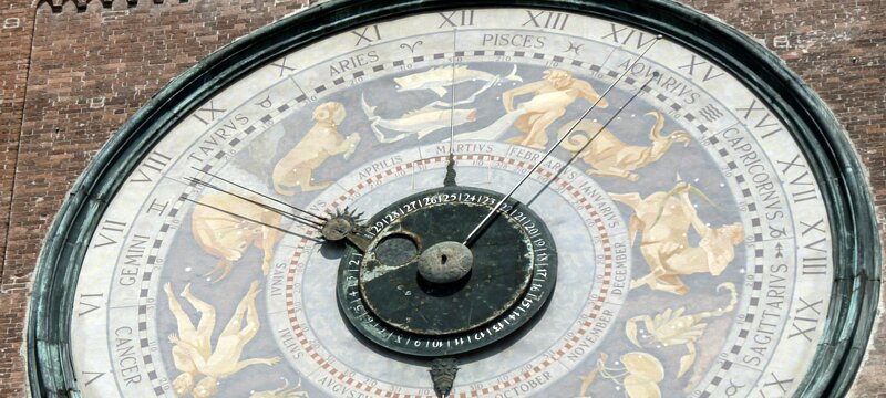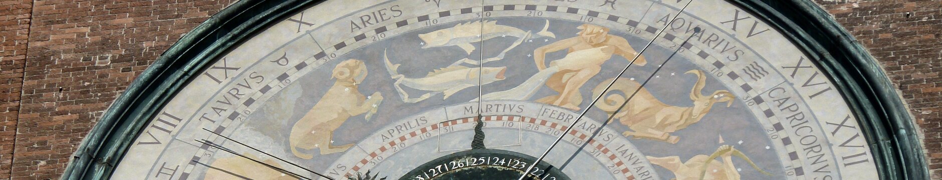 Astronomical clock dial, 8.44m diamater (56 sqm), late 16th century. It is the largest astronomical clock in the world.