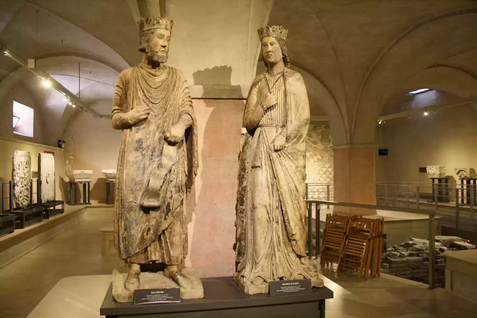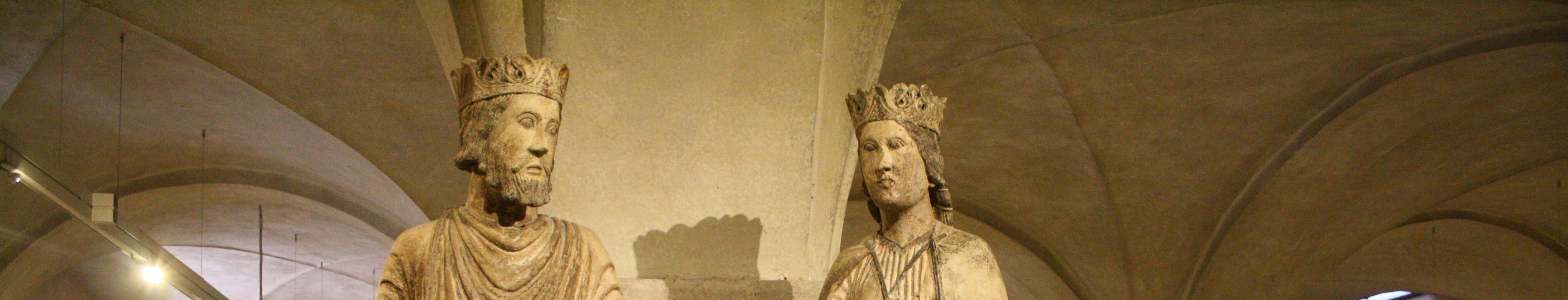 Solomon and the Queen of Sheba, originally placed in the niches on the right of the North portal. The statue are a reference to the Bible (Matthew XII:42).