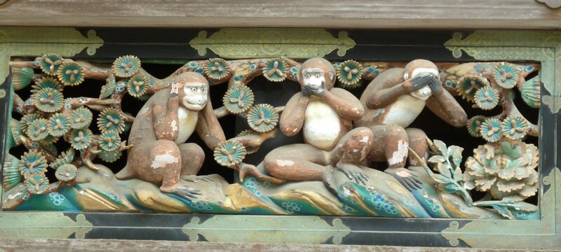 A mother monkey is looking far into the future of her child, and a child is looking up at her mother. Three monkeys tell us that children should "see no evil, say no evil, hear no evil". The monkey is about to be independent. The monkey is about to be independent. A monkey is ambitiously looking up. A monkey is ambitiously looking up. A monkey is frustrated in life and desperately looking down the cliff while one of his friends is cheering him up. Lovesick monkey. A newly wed couple are going to sail through the rough waves of life together. Expectant mother going back to the first scene. Pagoda Labels