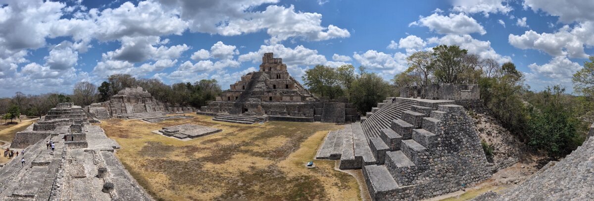 SOUTH TEMPLE This great four bodies pyramidal basement was built in the first centuries of our era. It shows Peten architecture (200-600 AD), with apron…