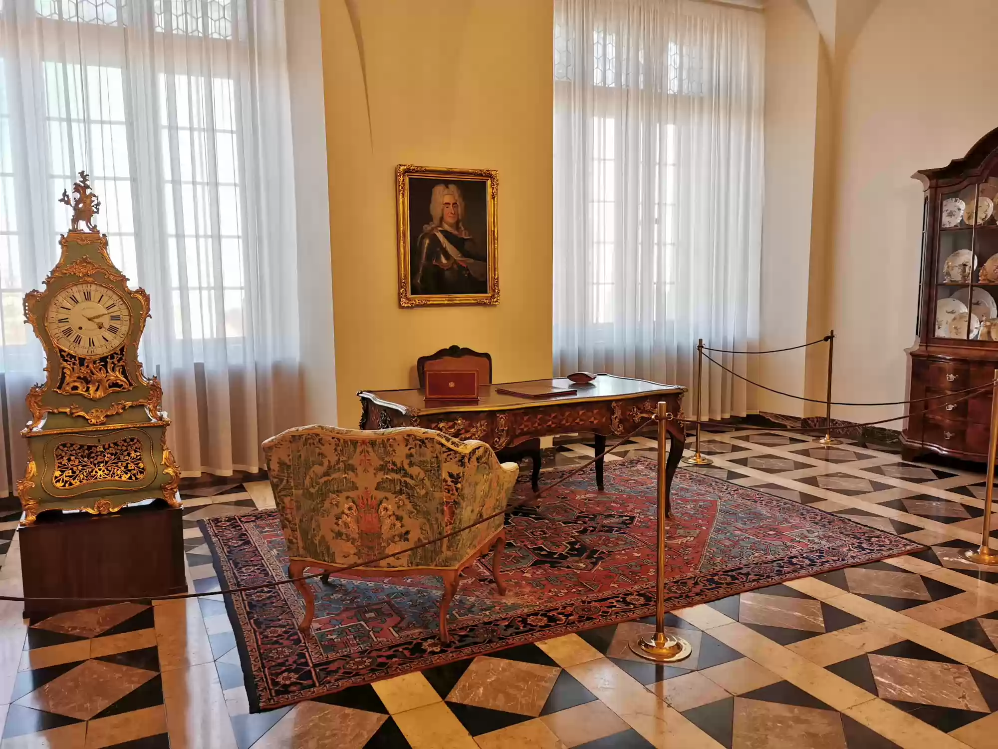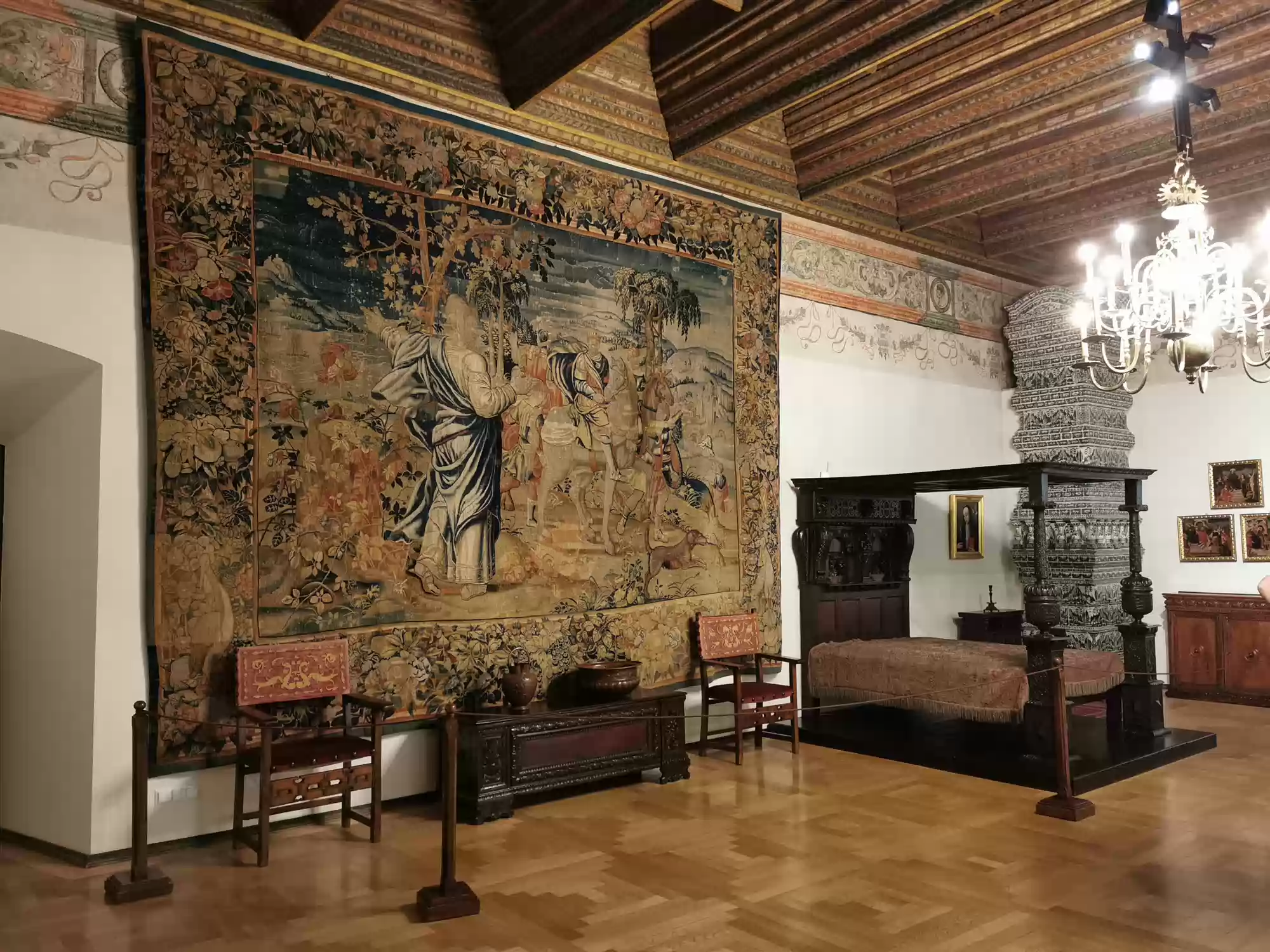 Private apartments of the king and queen. Several rooms feature 16th century ceilings. Dining room. Dining room. Bed chamber. Bed chamber. Bed chamber. Bed chamber. Bed chamber. Grey vestibule. Grey vestibule. Vestibule in the Danish tower. Vestibule in the Danish tower. Vestibule in the Danish tower. Hen's foot extension, a remnant from the 14th century castle. Hen's foot extension, a remnant from the 14th century castle. Hen's foot extension, a remnant from the 14th century castle. Saxon vestibule. Saxon vestibule. Official rooms Labels