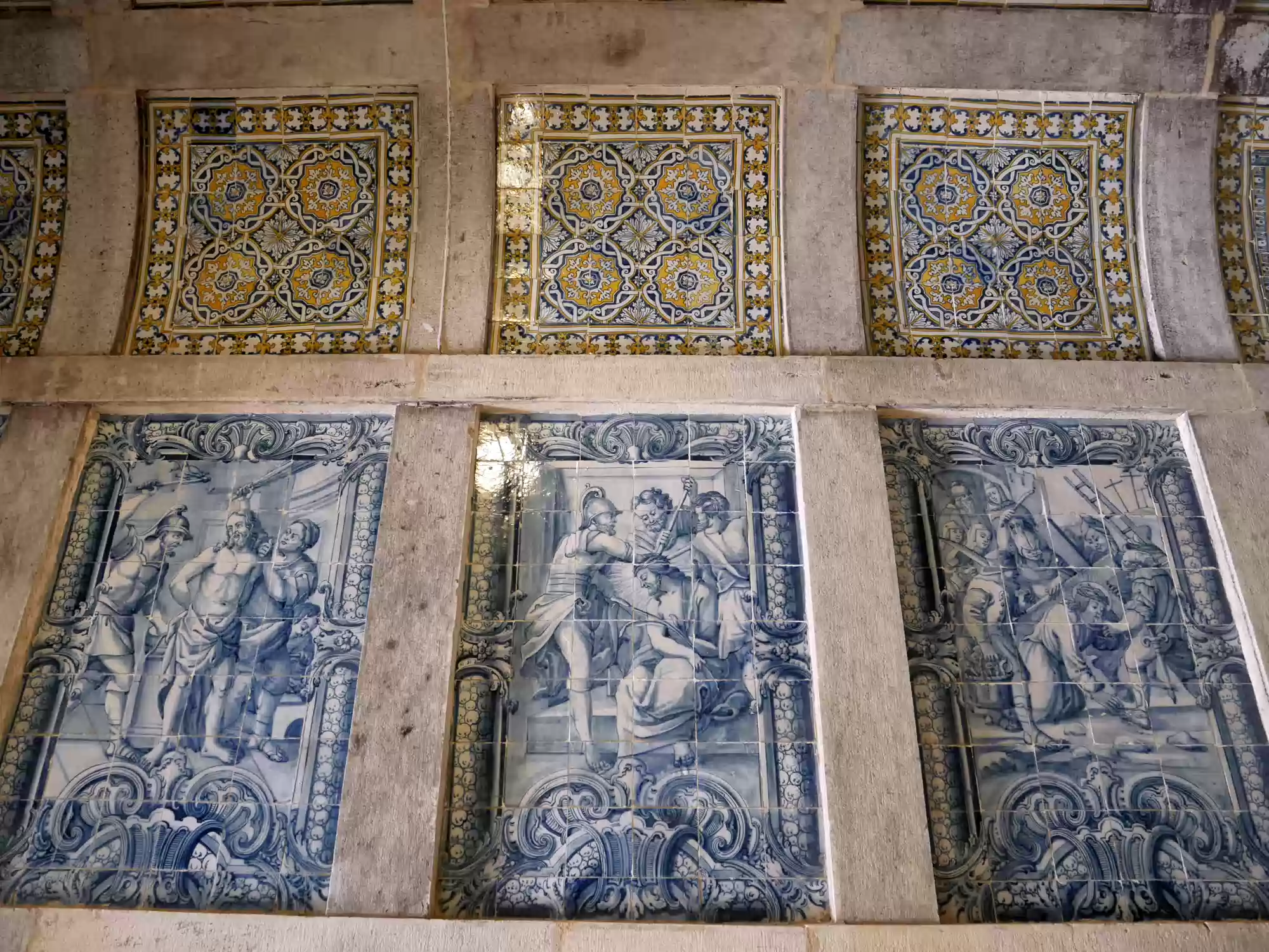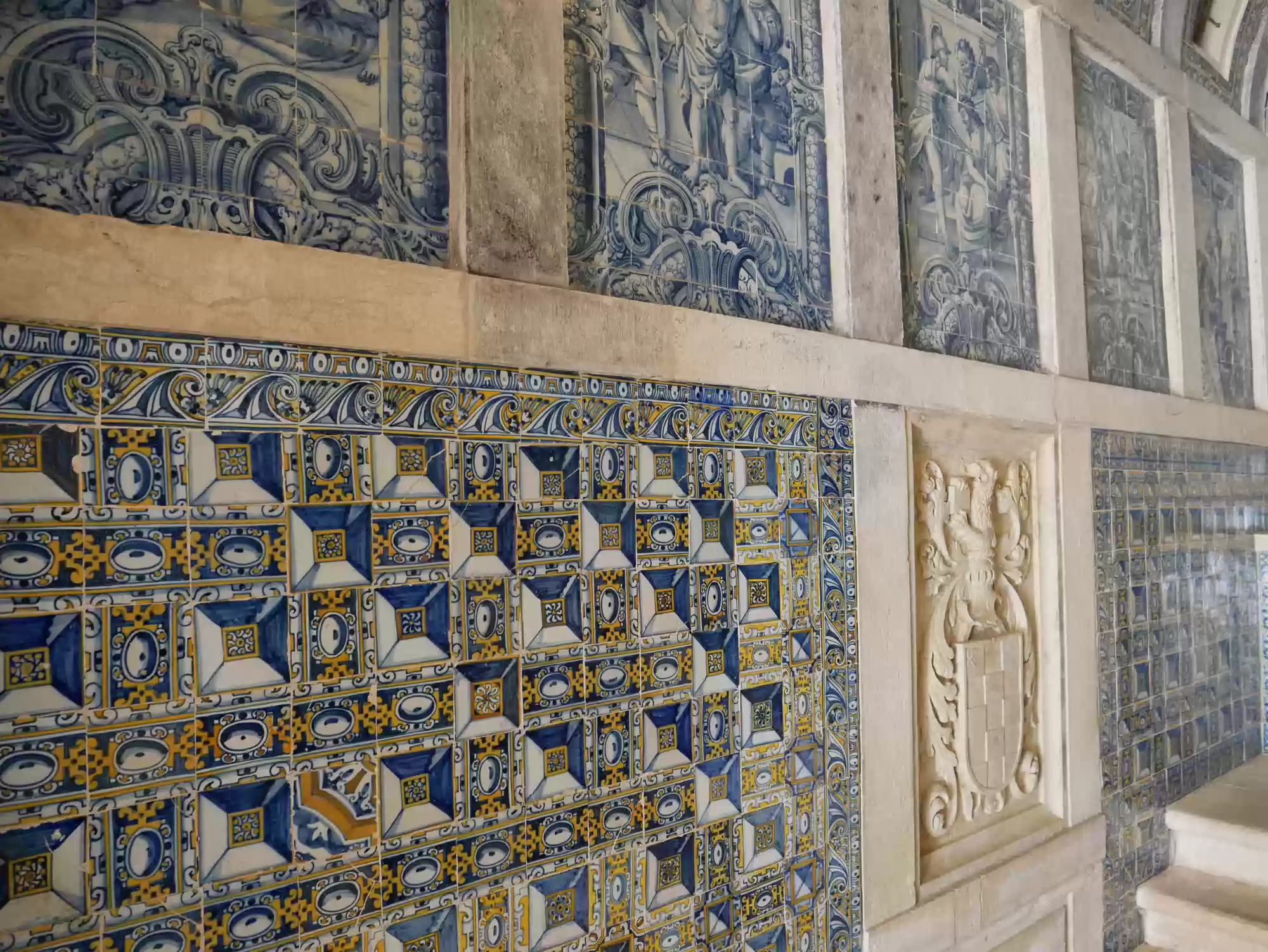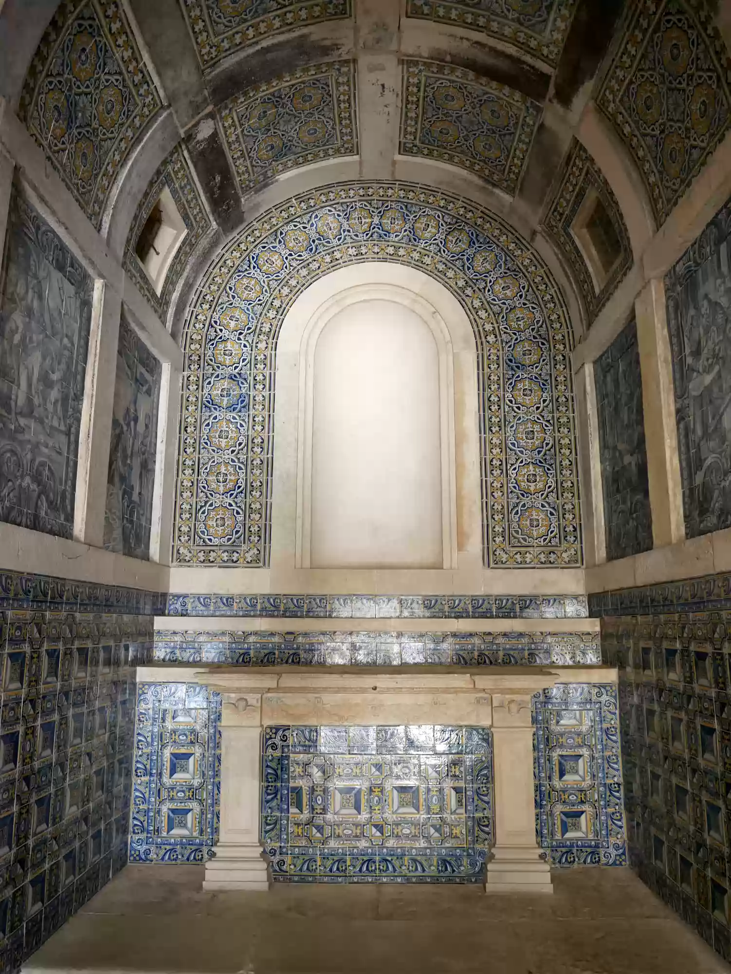 Chapel of Antonio Portocarreiros, his wives and their descendants, built in 1626. The azulejo tiles are from the 17th centuries with scenes from the life of Mary and Christ from the 18th century. The azulejo tiles are from the 17th centuries with scenes from the life of Mary and Christ from the 18th century. The azulejo tiles are from the 17th centuries with scenes from the life of Mary and Christ from the 18th century. The azulejo tiles are from the 17th centuries with scenes from the life of Mary and Christ from the 18th century. Main cloisterRotunda Labels