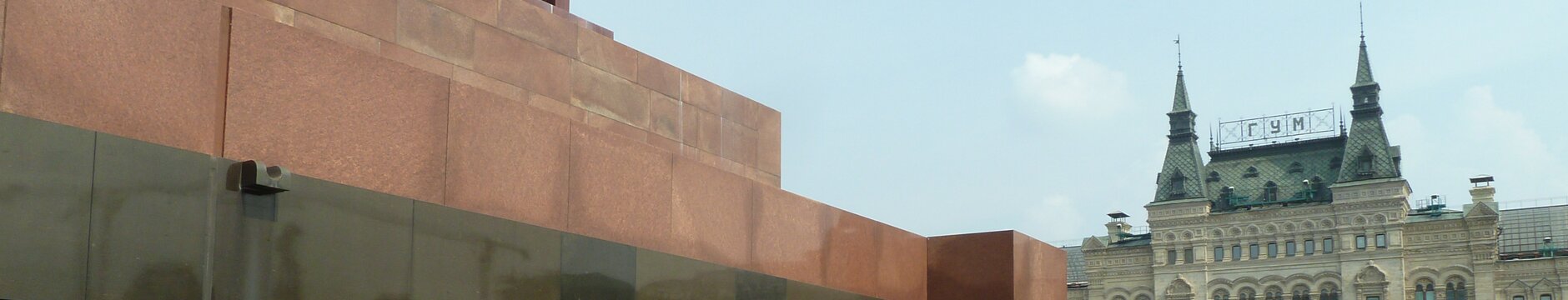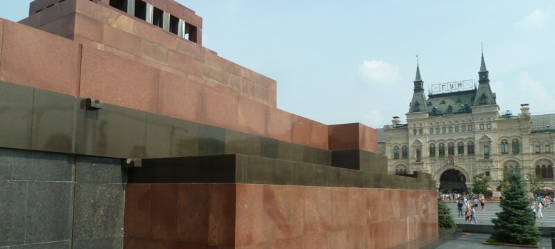 Lenin's Mausoleum, built in 1930, to serve as a tomb and exhibition building for Lenin's body. Lenin died on 21 January 1924. Cemetery for leading Russian citizens. Josef Stalin's grave. Stalin's body was exhibited along Lenin's body between 1953 and 1961. Josef Stalin's tomb. Stalin's body was exhibited along Lenin's body between 1953 and 1961. Yuri Gagarin's tomb. GUMSaint Basil Cathedral Labels