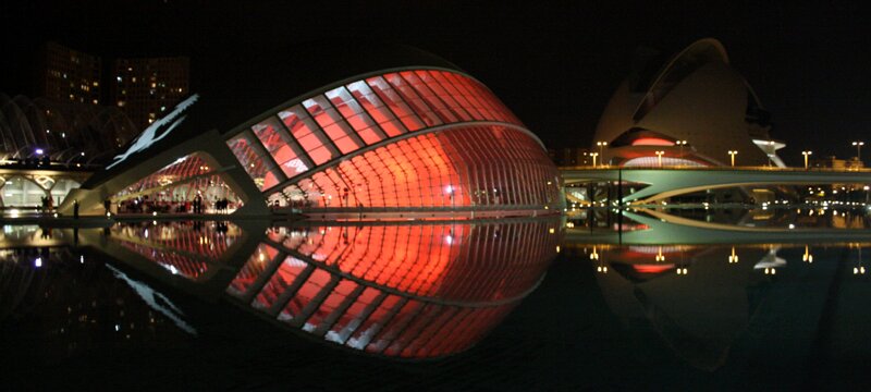 Hemisferic, a cinema and planetarium, completed in 1998. Dimension: 110x55m. The hemisferic contains a spherical Omnimax theater. AgoraEl Palau de les Arts Reina Sofia Labels
