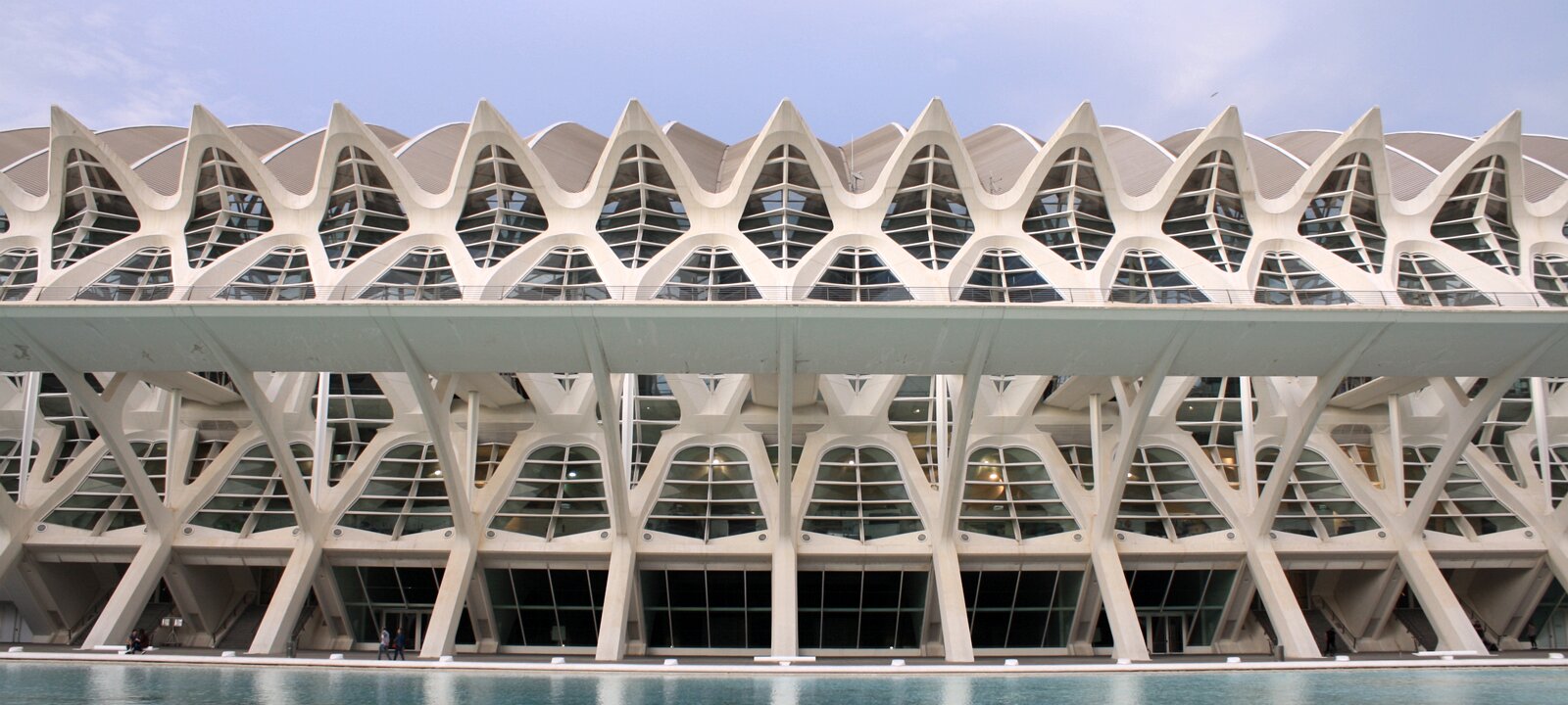 El Museu de les Ciències Príncipe Felipe, the science museum of Valencia. Left: opera house and hemisferic; right: agora and bridge. 220 meters long, 80 meters wide and 55 meters high. El Palau de les Arts Reina SofiaUmbracle Labels