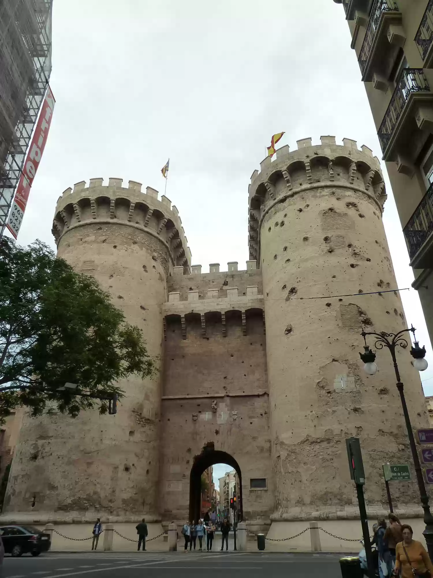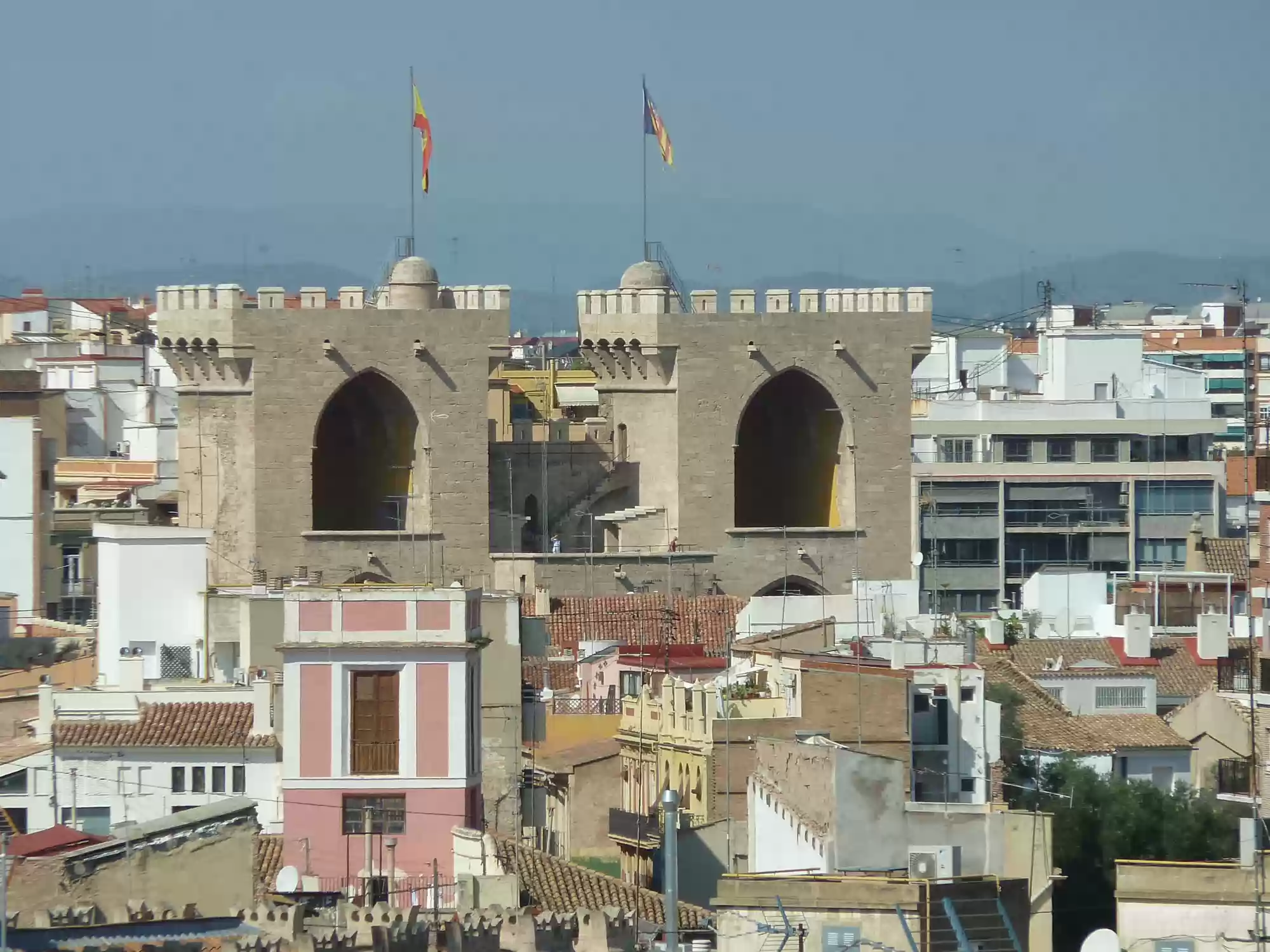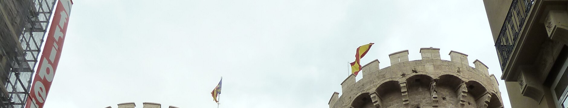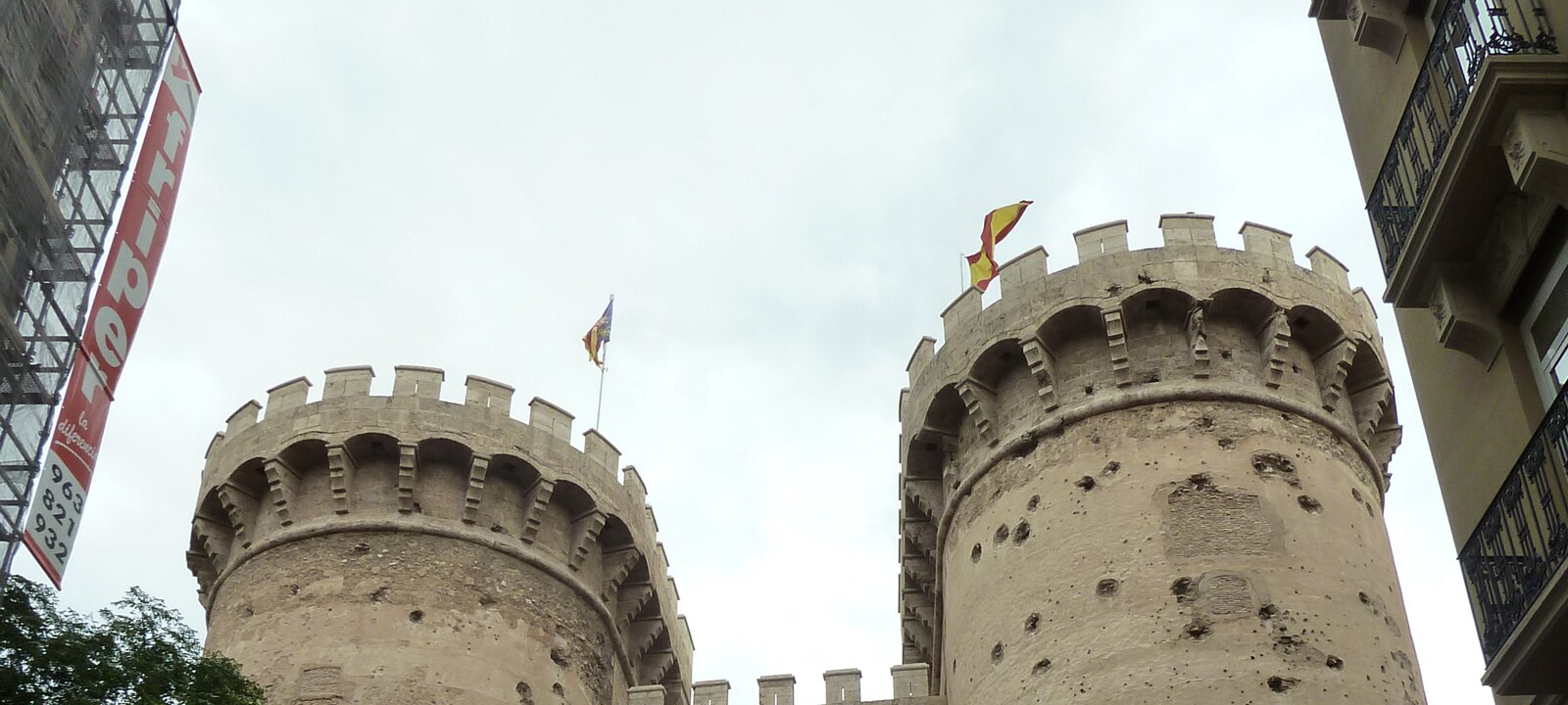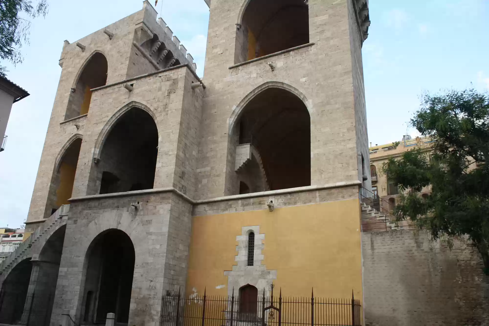 Quart towers, part of the medieval city wall surrounding the old city. The defensive towers were built between 1441 and 1460 in pointed arch gothic style. The… Silk exchangeTorres de Serranos Labels