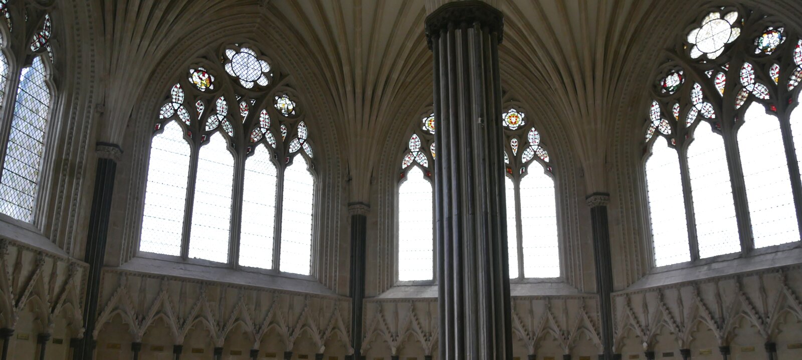 Chapter house, 1306. It is built as a first floor on top of an undercroft, the "strong room" of the cathedral. A ribbed vault is supported on a central column…