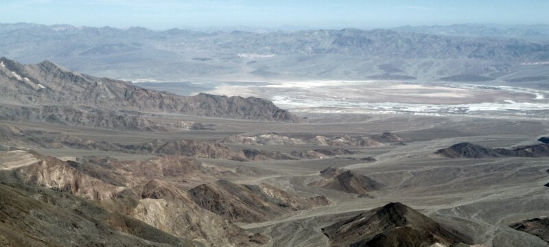 Badwater basin below and the peaks of the Panamint mountains above are the results of the land tilting along active fault lines; the valley floor drops and the…