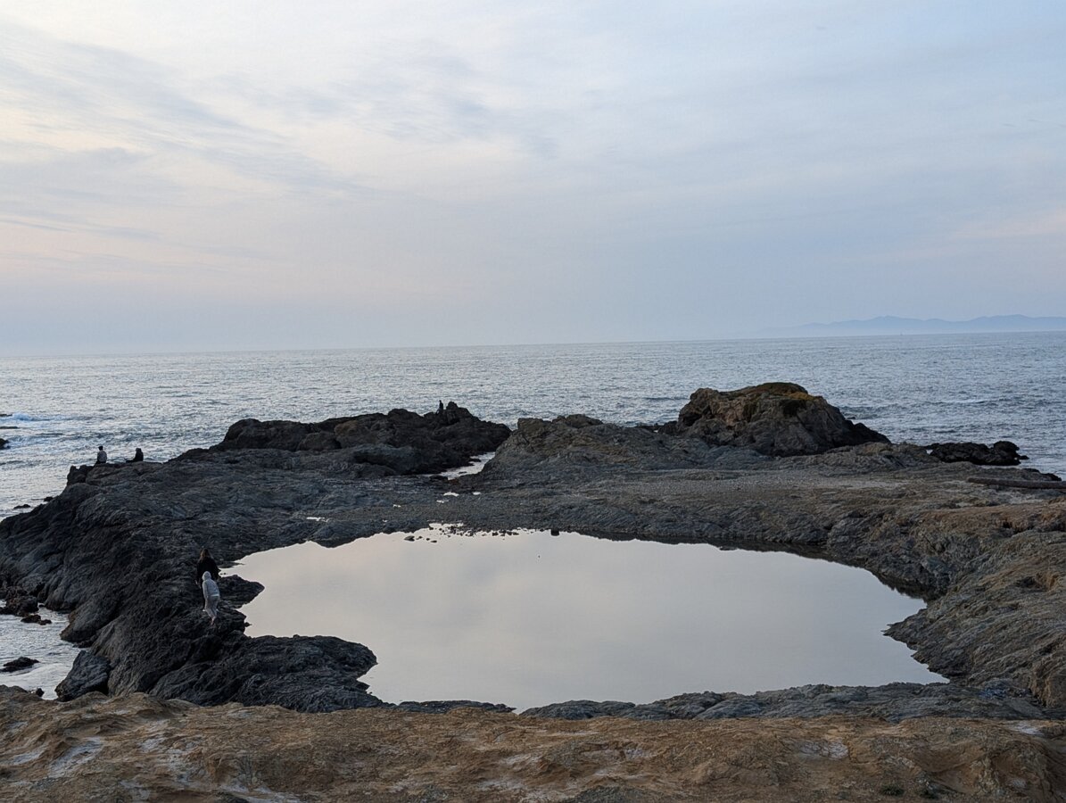 Glass beach. The beach is covered with little glass pebbles, coming from a dump located here between 1949-1967. The dump was cleared but glass items were left…