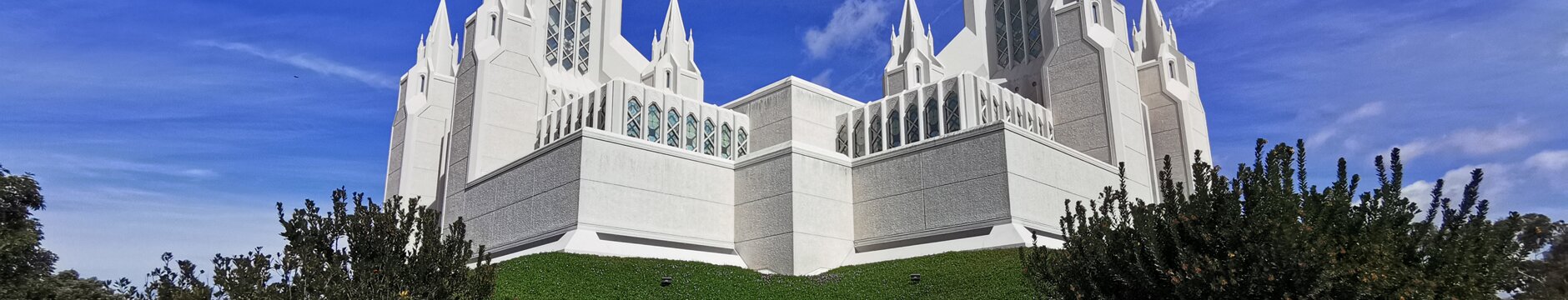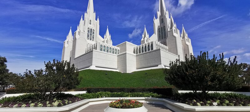 Temple of the (Mormon) Church of Jesus Christ of Latter-day Saints, built between 1988-1993. Mission BayUSS Midway Labels