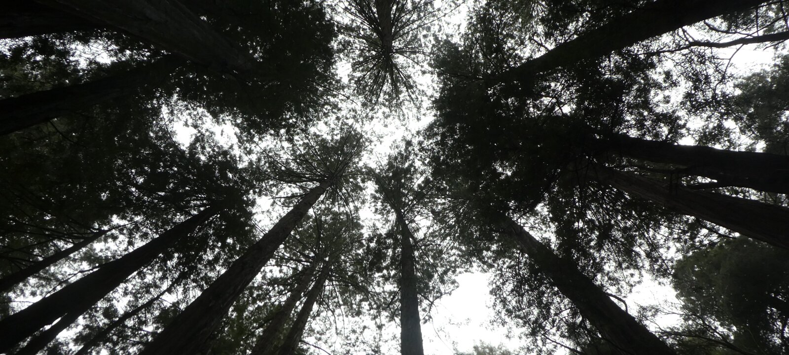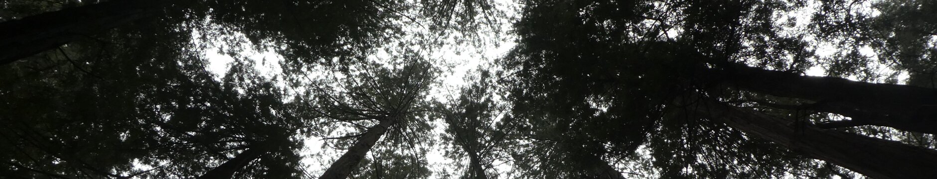 Redwood trees. All trunks belong to the same original tree, which died (middle). Sequoias. MissionPainted ladies Labels