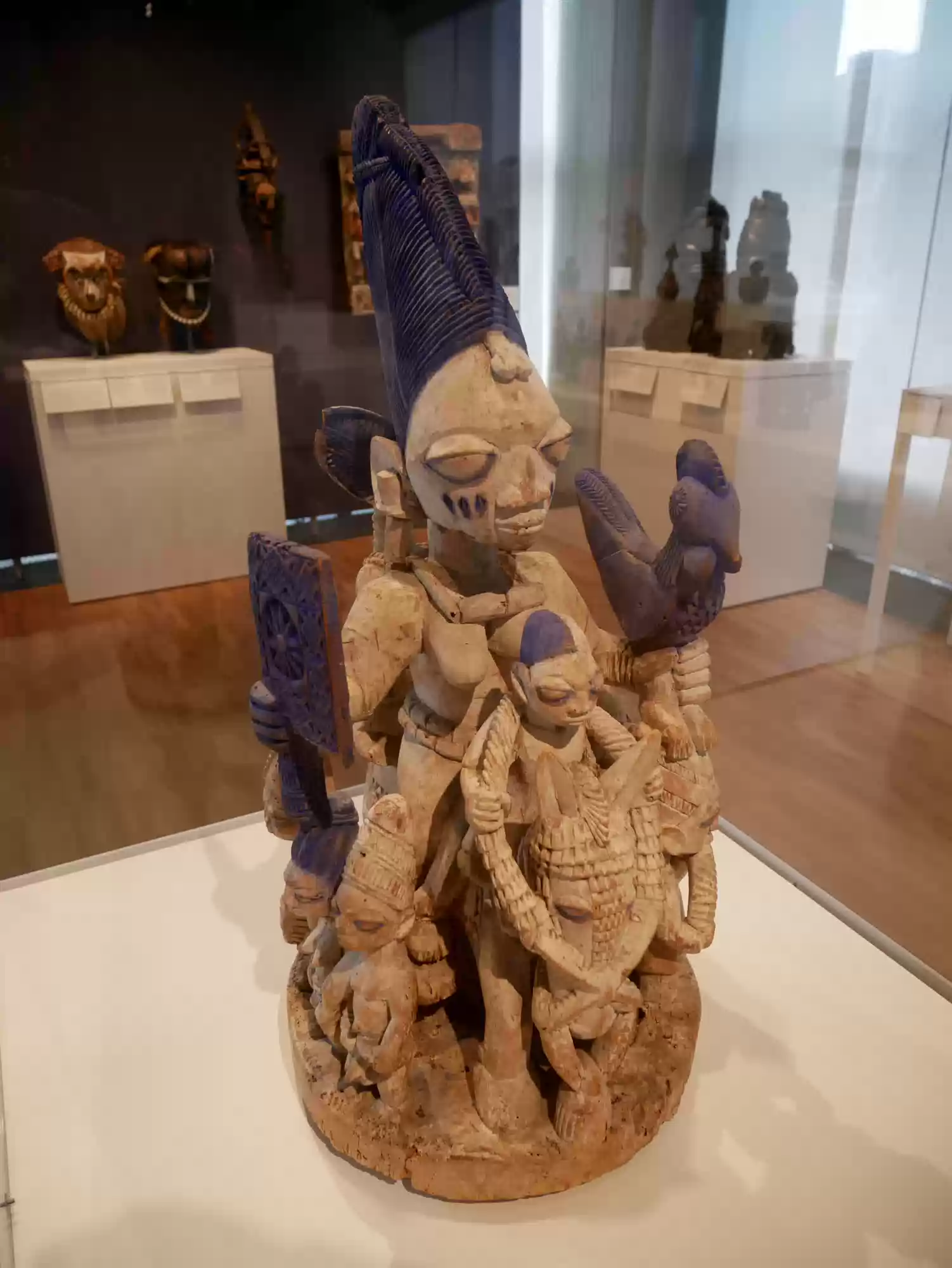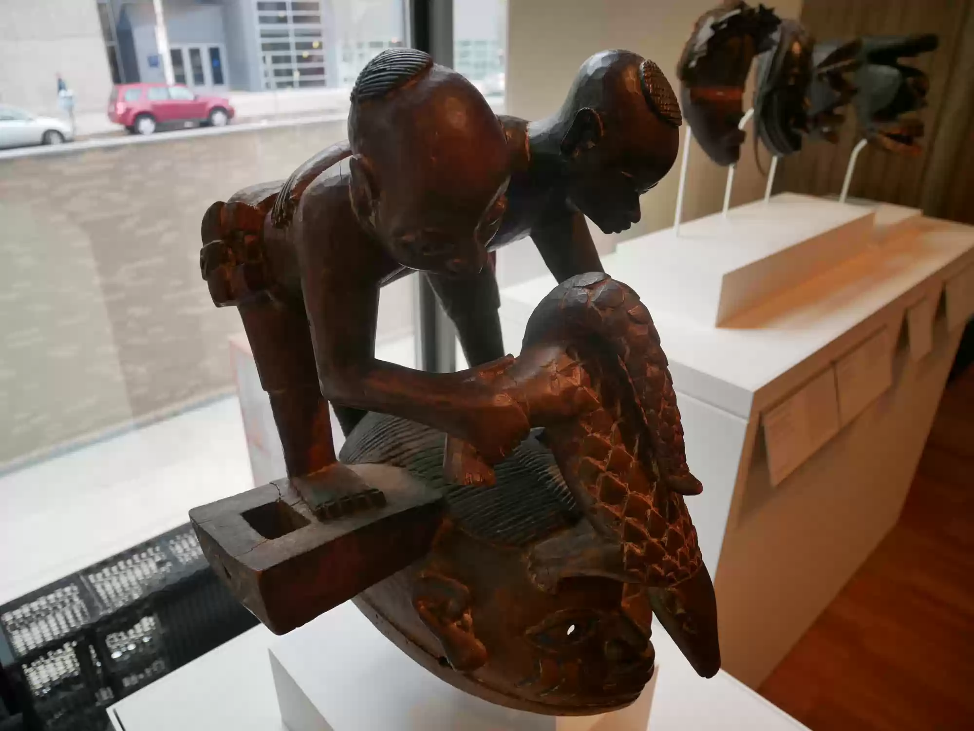 Gelede mask with two male figures and a pangolin, Benin or Nigeria, 20th century. Gelede festivals entertain and honor the spiritual powers of female ancestors,…