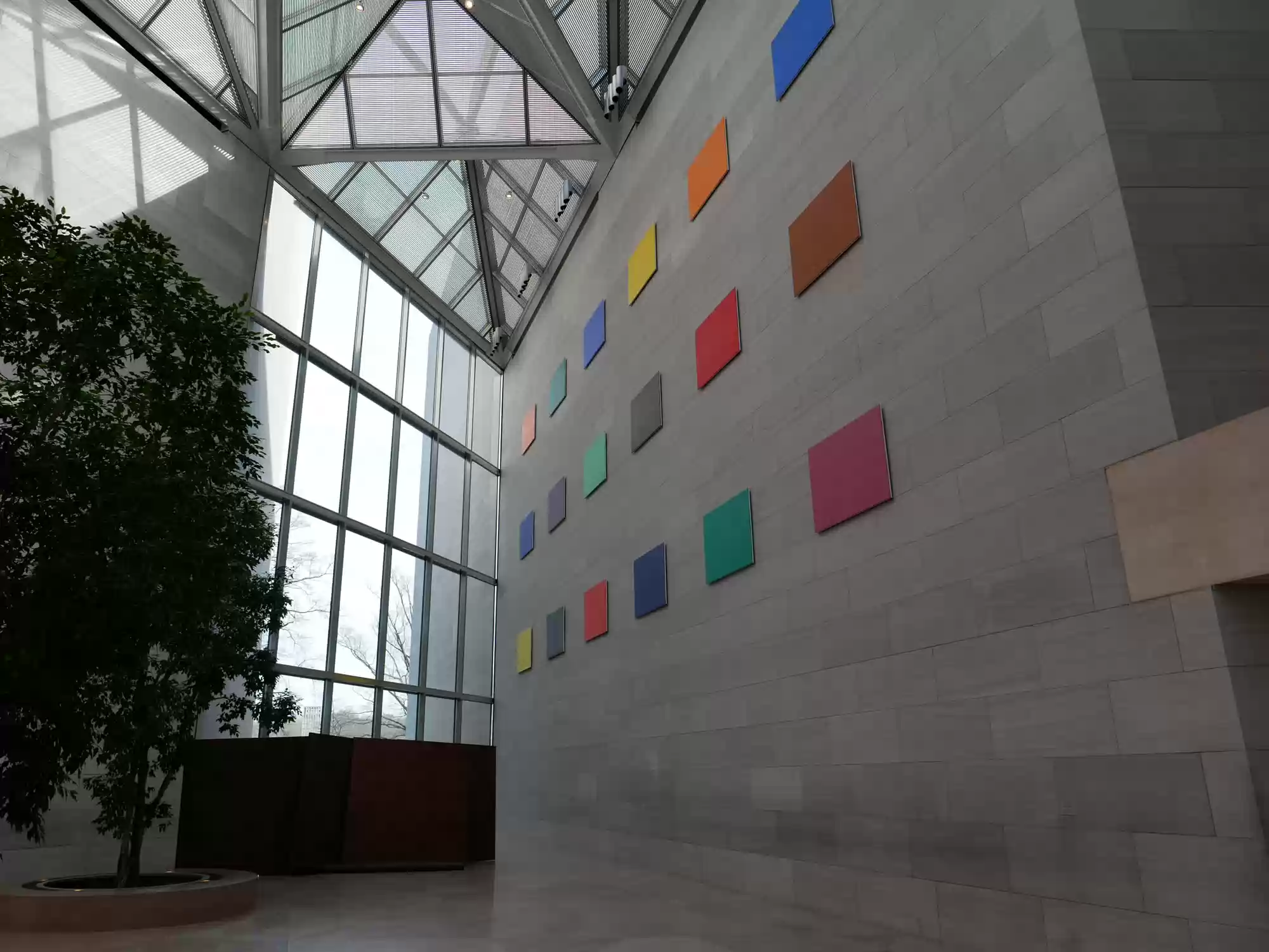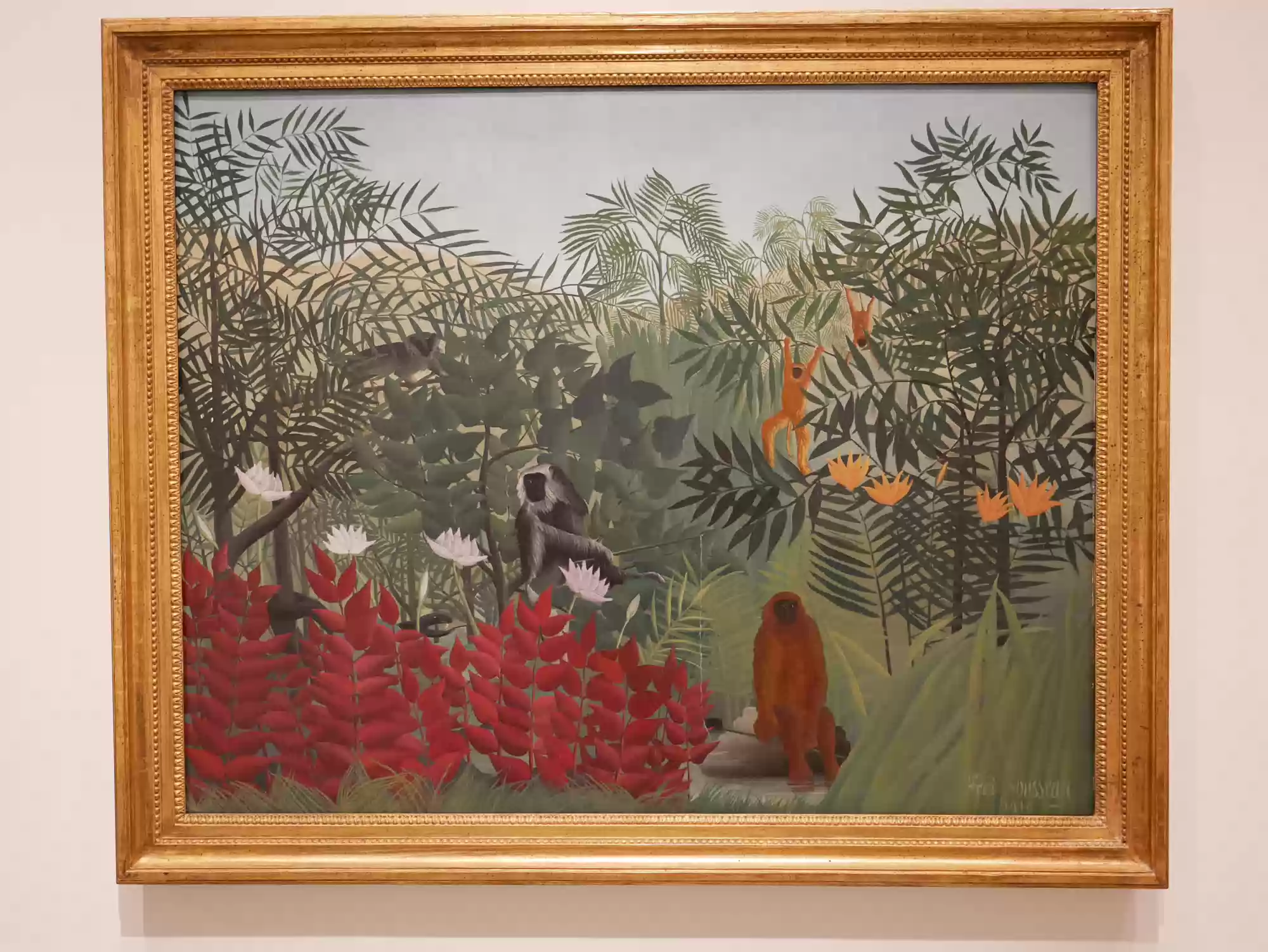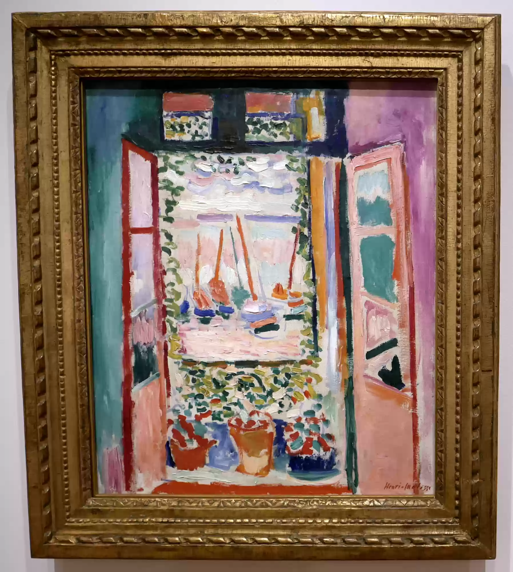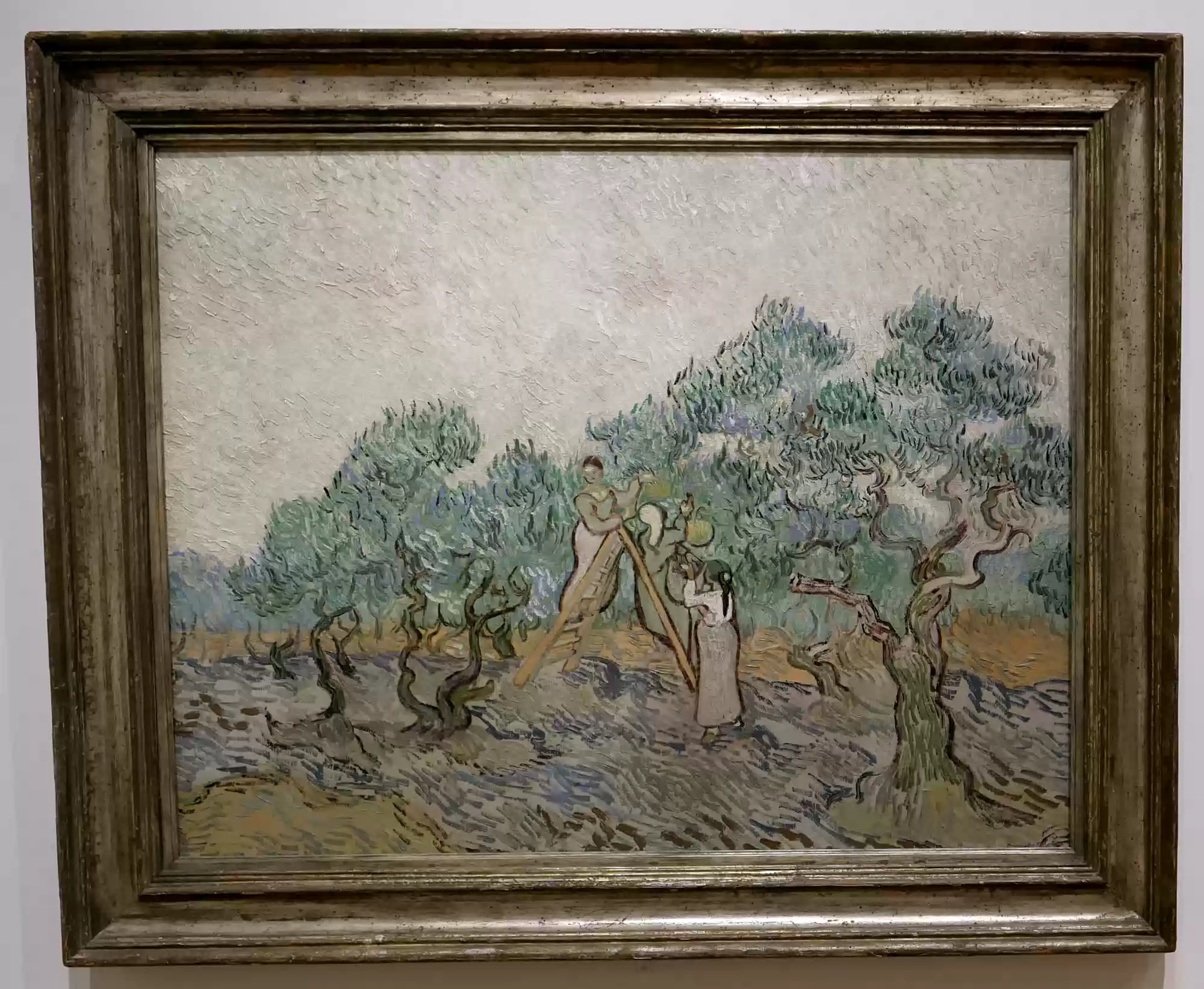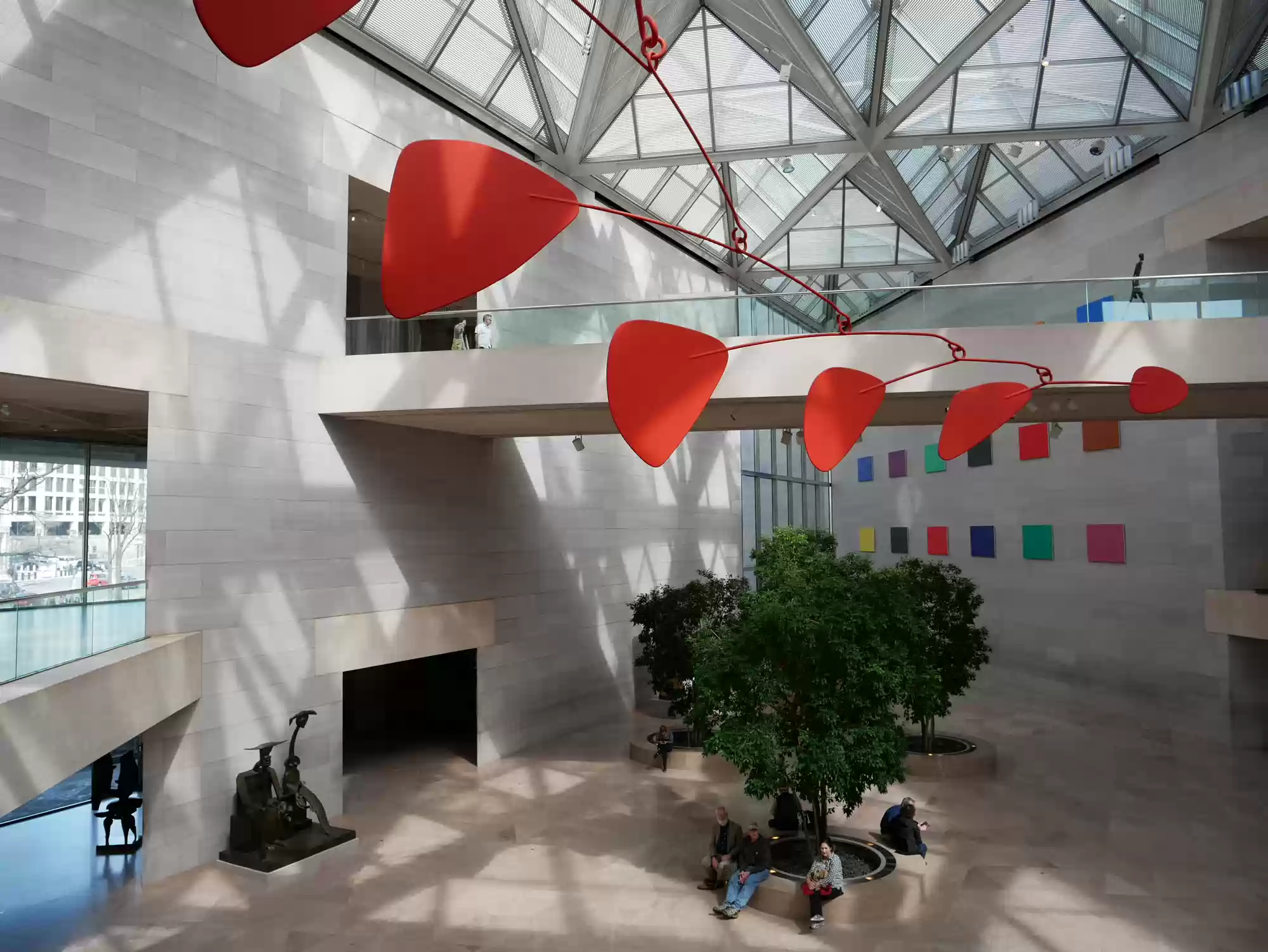 The East Building, built by IM Pei between 1971-1978. Van Gogh, The olive orchard, 1889. Henri Matisse, La coiffure, 1901. Pablo Picasso, Le gourmet, 1901. Pablo Picasso, The tragedy, 1903. Pablo Picasso, Juggler with still life, 1905, and Two youths, 1906. Pablo Picasso, Head of a woman, 1909. Henri Matisse, Open Window, Collioure, 1905. George Braque, The port of La Ciotat, 1907. Emil Nolde, Flower garden, kneeling woman with hat, 1908. Henri Rousseau, Tropical forest with monkeys, 1910. Ernst Ludwig Kirchner, Two girls under an umbrella, 1910. Seraphine Louis, Marguerites (left) and Feuilles (right), 1925-1928. Maurice Hirshfield, Tiger, 1940. Jackson Pollock, Mural, 1943, commissioned by Peggy Guggenheim for her Manhattan apartment. Andy Warhol, Green Marylin, 1962. Andy Warhol, Self-portrait, 1986. Roy Lichtenstein, Painting with statue of Liberty, 1983. Sculpture garden Labels