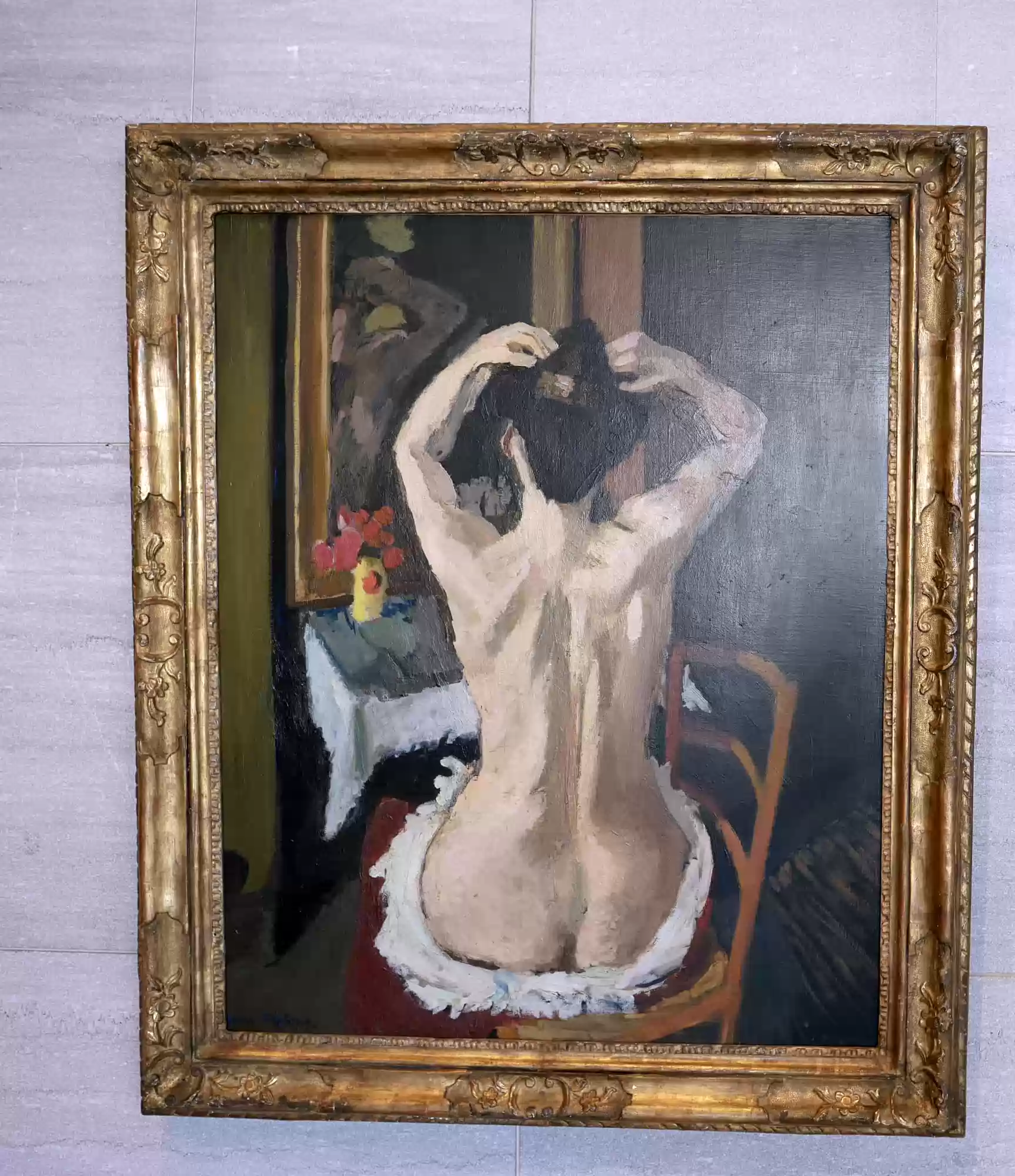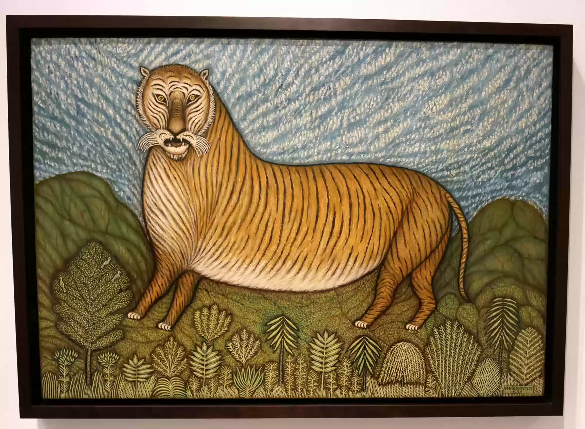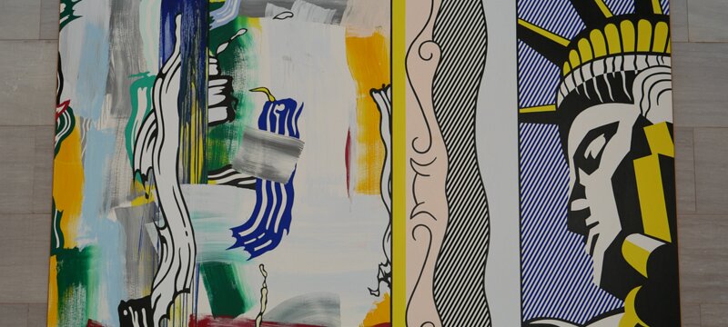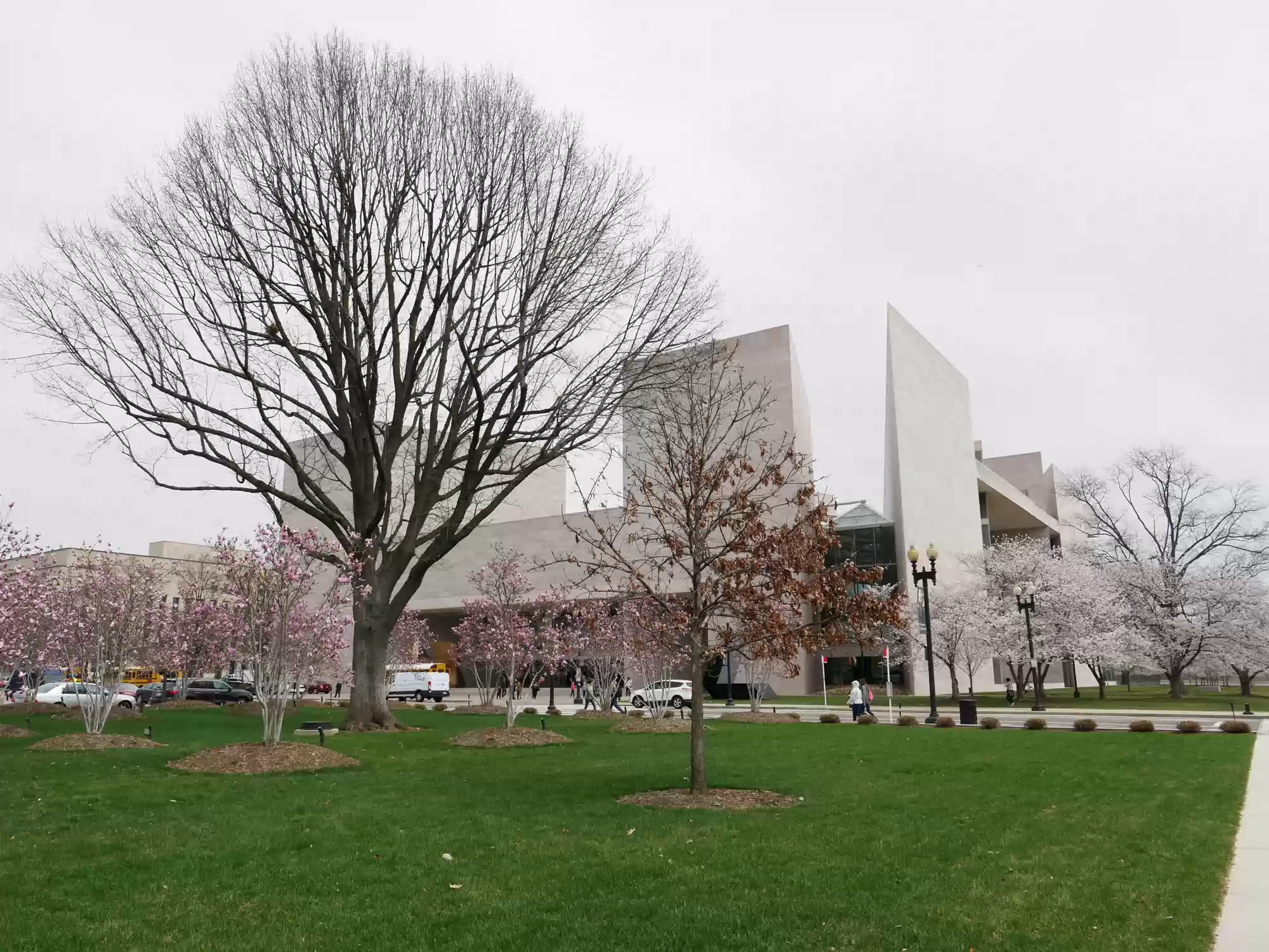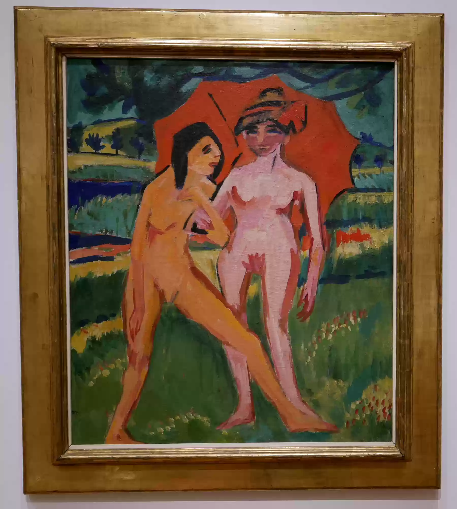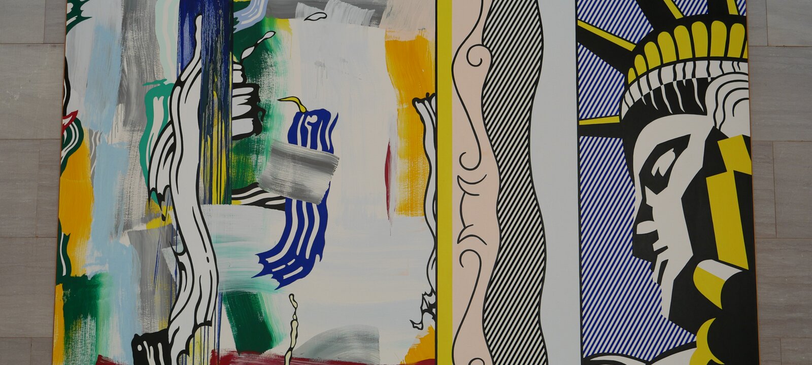 The East Building, built by IM Pei between 1971-1978. Van Gogh, The olive orchard, 1889. Henri Matisse, La coiffure, 1901. Pablo Picasso, Le gourmet, 1901. Pablo Picasso, The tragedy, 1903. Pablo Picasso, Juggler with still life, 1905, and Two youths, 1906. Pablo Picasso, Head of a woman, 1909. Henri Matisse, Open Window, Collioure, 1905. George Braque, The port of La Ciotat, 1907. Emil Nolde, Flower garden, kneeling woman with hat, 1908. Henri Rousseau, Tropical forest with monkeys, 1910. Ernst Ludwig Kirchner, Two girls under an umbrella, 1910. Seraphine Louis, Marguerites (left) and Feuilles (right), 1925-1928. Maurice Hirshfield, Tiger, 1940. Jackson Pollock, Mural, 1943, commissioned by Peggy Guggenheim for her Manhattan apartment. Andy Warhol, Green Marylin, 1962. Andy Warhol, Self-portrait, 1986. Roy Lichtenstein, Painting with statue of Liberty, 1983. Sculpture garden Labels