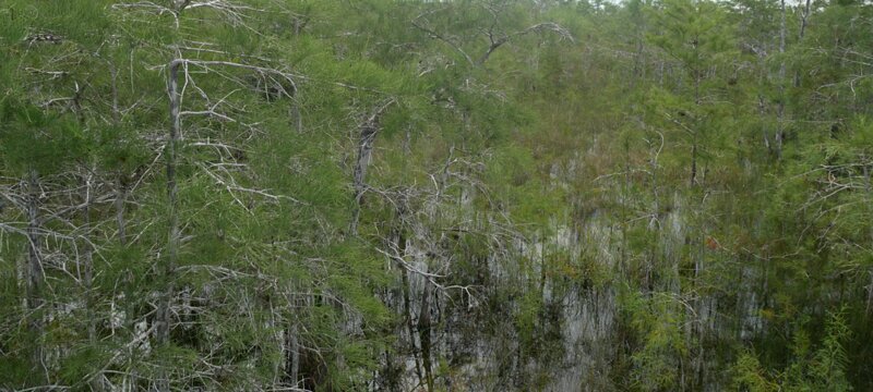 Shark river slough flows to the gulf; the river is 13km wide and very shallow. Baldcypress. Magnolia. Mahogany Hammock Trail Labels
