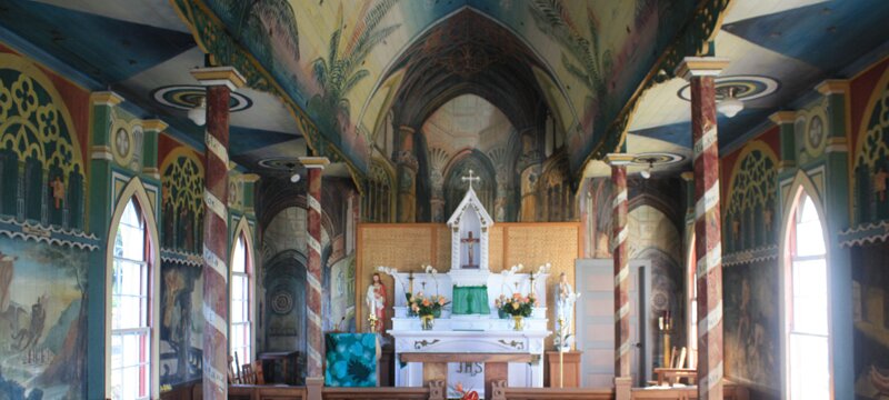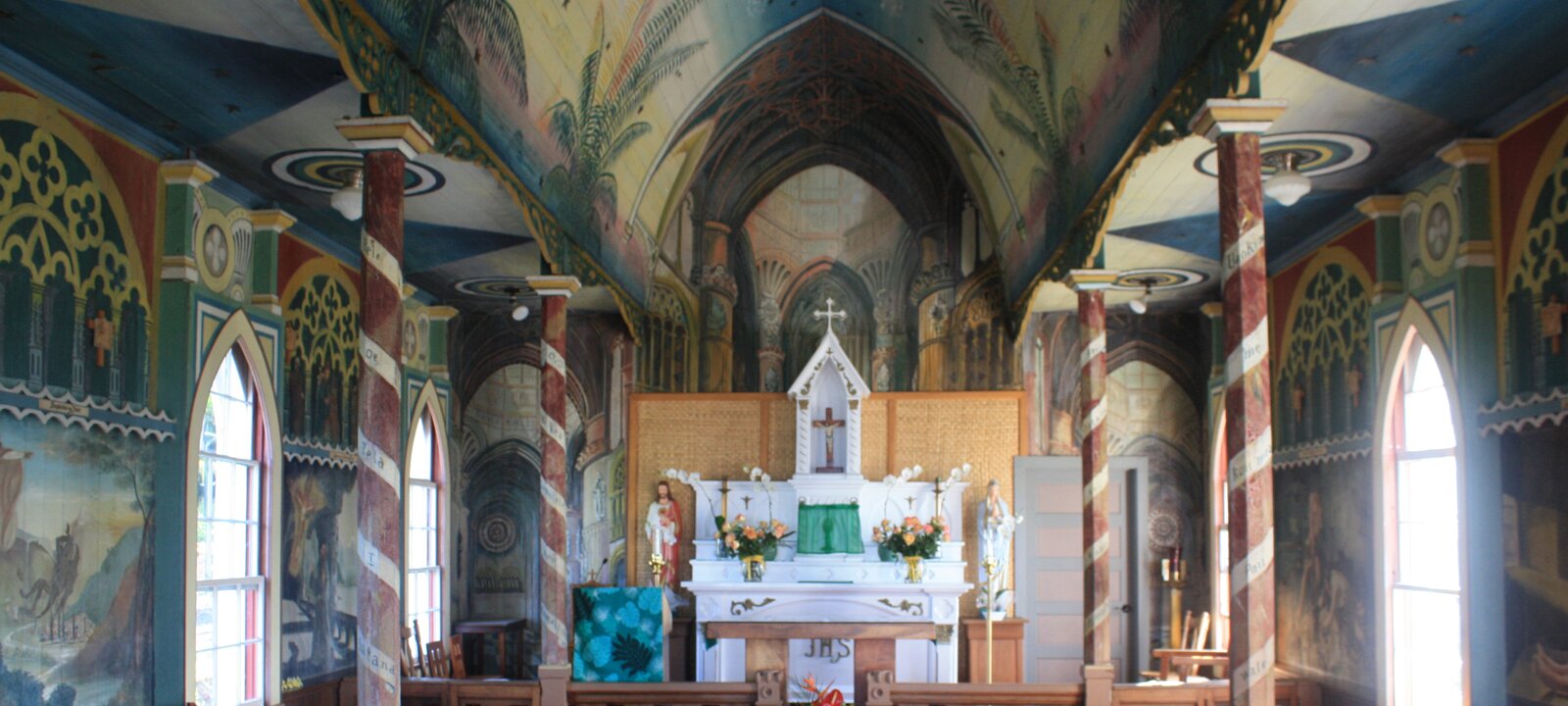 Saint Benedict church was built in 1902 by Father John. A self-taught artist, Father John Berchmans Velghe (from Belgium) painted the interior walls of the church with scenes from the Bible. Pu'uhonua O Honaunau Labels