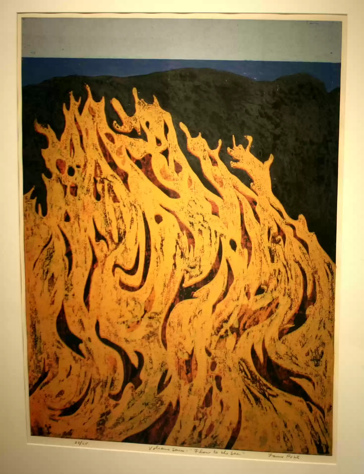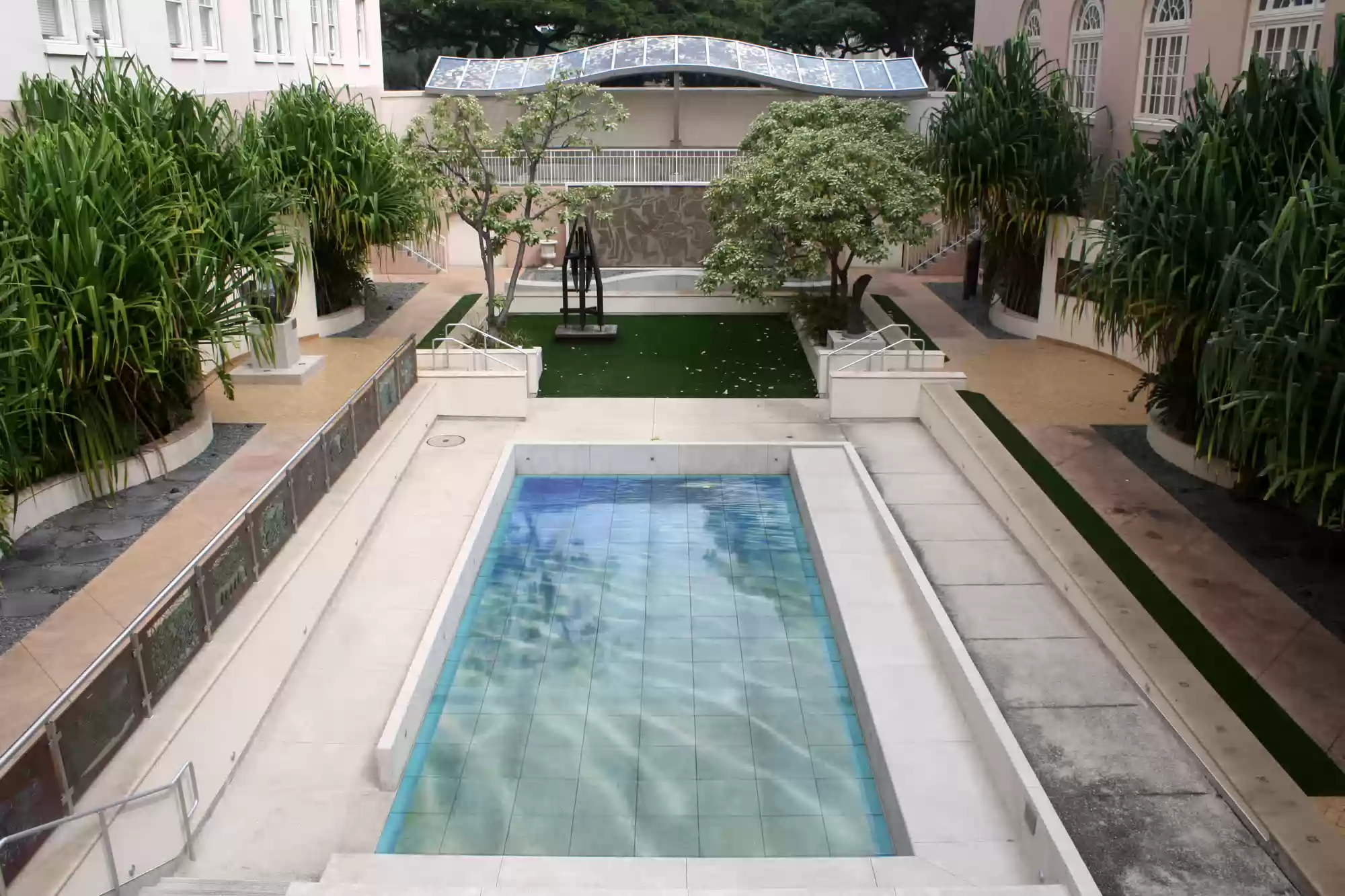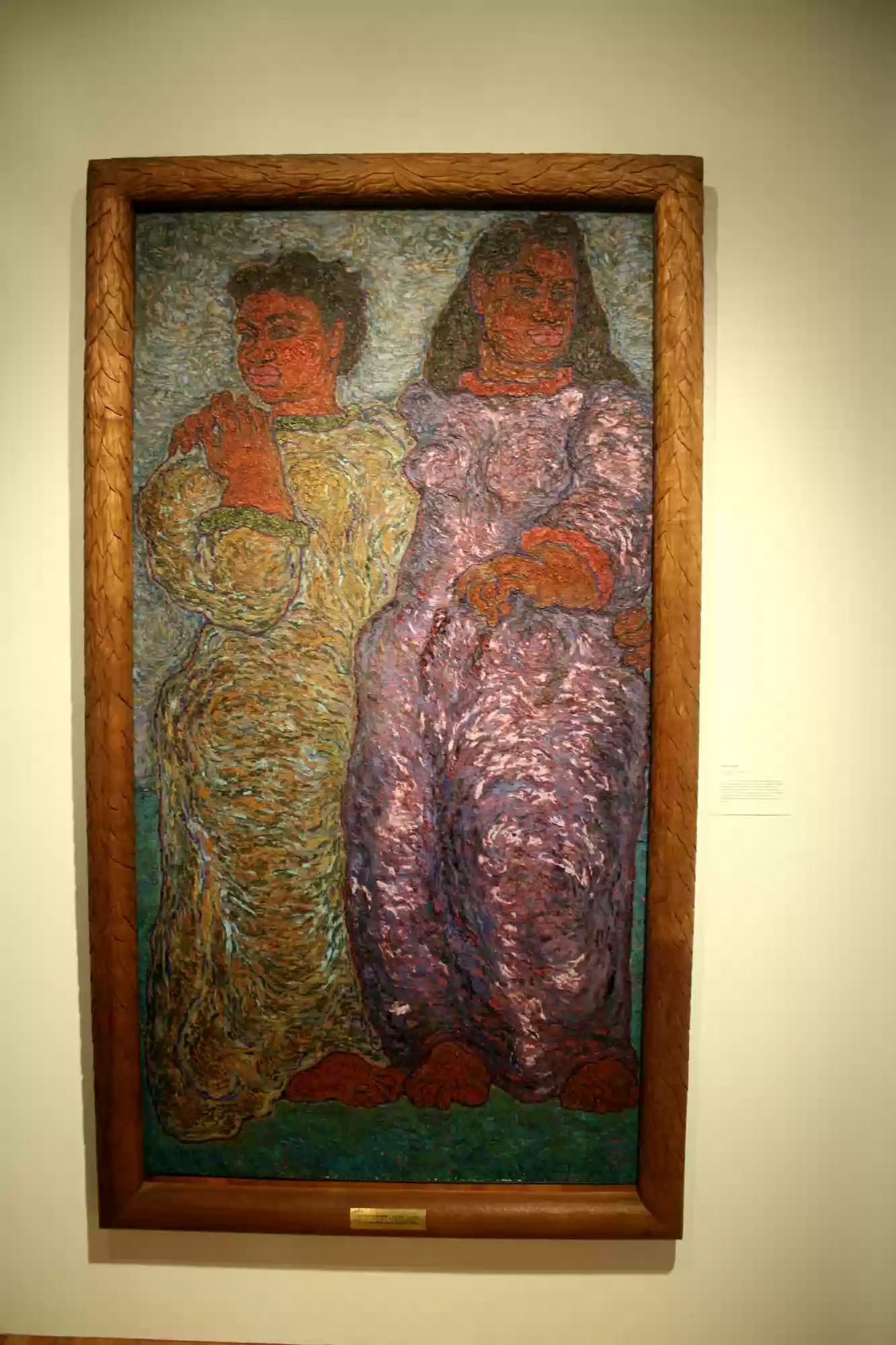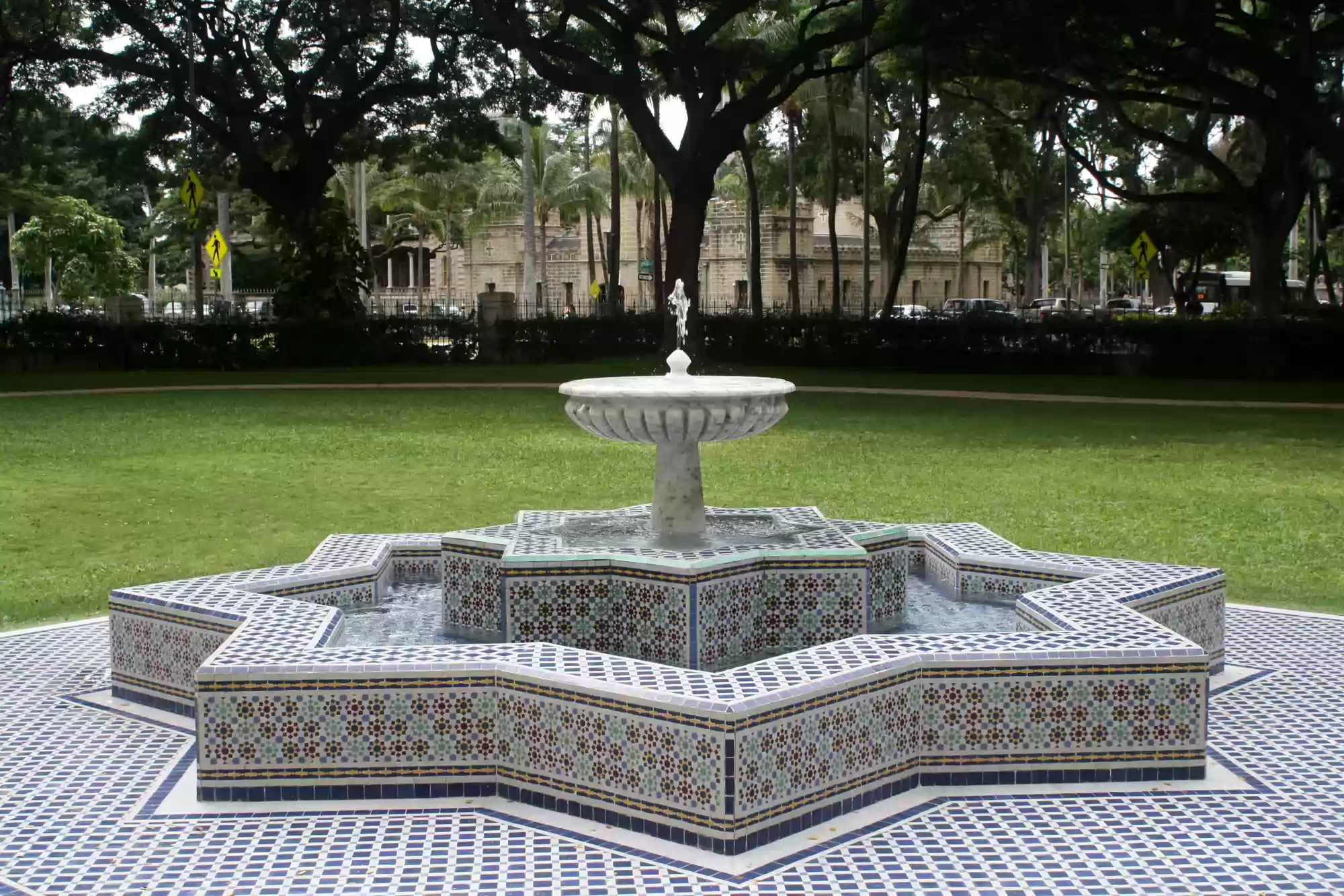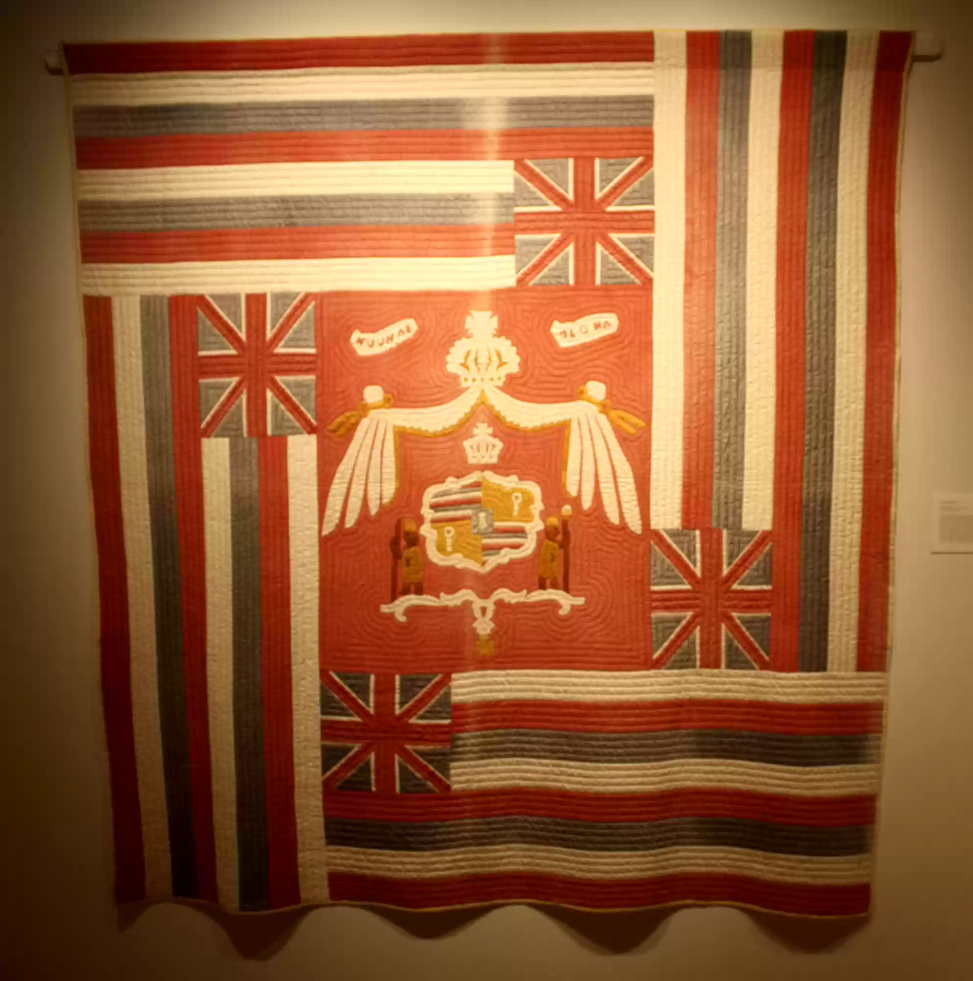 Fountain gifted by the Kingdom of Morocco to the people of the state of Hawaii, 2012. Artist unknown, Hawaiian flag quilt, c. 1898. D. Howard Hitchcock, Panorama of Waimea Canyon, c. 1907. D. Howard Hitchcock, Waimea Canyon, Kauai, 1909. Alfred R. Gurrey Sr., Dusk at Kilauea Kauai, 1914. Lionel Walden, Diamond Head and Waikiki beach, 1918. Madge Tennent, Hula girl in national flowers, c. 1930. Madge Tennent, Hula girl in national flowers, c. 1930. Madge Tennent, Two sisters of Old Hawaii, 1933. Louis Pohl, Flow to the sea, 1971. Masami Teraoka, Ronin samurai, 1982. Hank Murta Adams, Blue torso, 1984. Hiroki Morinoue, Ocean rain, 1994. Stewart Valentine Medeiros Sr., Presentation 'Umeke. Saint Andrews Cathedral Labels