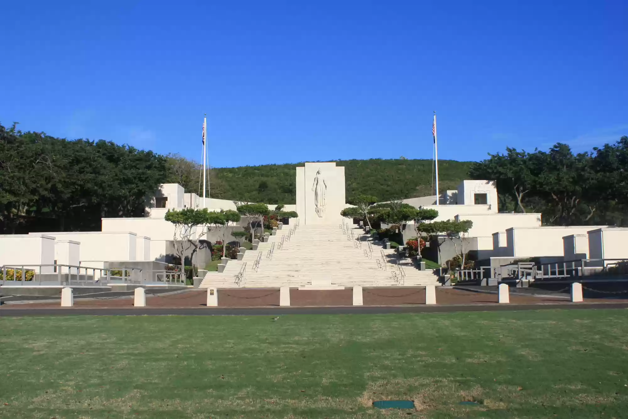 Punchbowl crater, formed 75000-100000 years ago. A military cemetery was established within the crater in 1949. It is the home of 34000 graves. DowntownWaikiki Labels