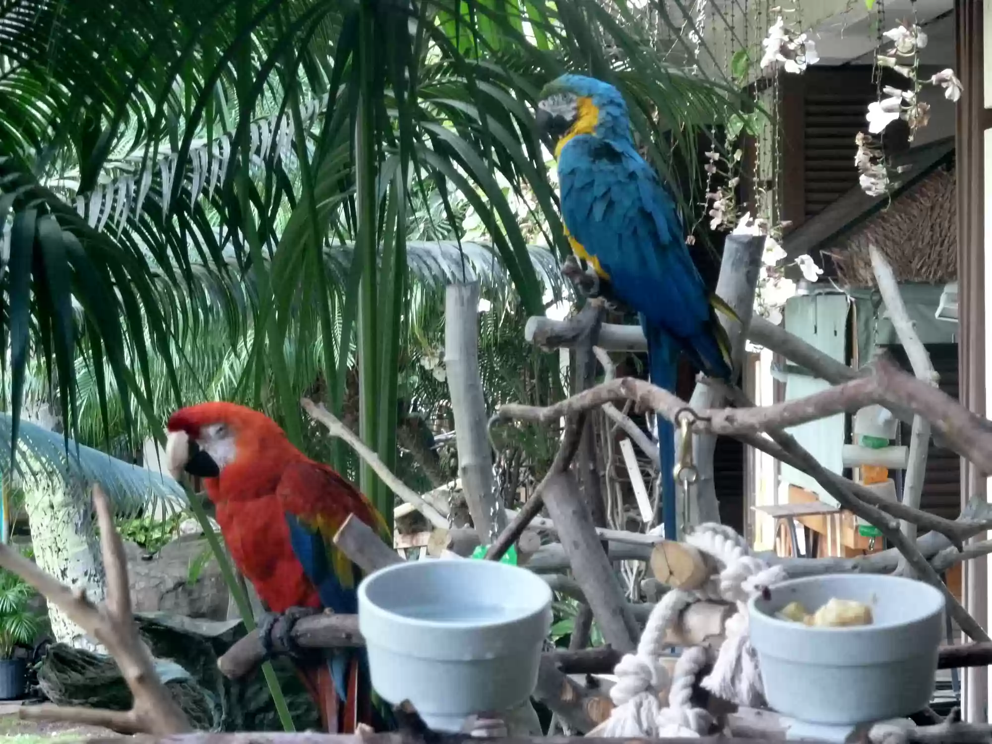 The hawk soars with the wind, Kim Duffett. Scarlet macaw and blue and gold macaw (South America). Green winged macaw, South America. African black-footed penguins. African black-footed penguins. Ukulele shop. Labels