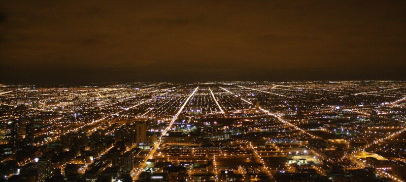 John Hancock tower (in black), 344 meters high, 100 stories, completed in 1969. Grant ParkMillenium Park Labels