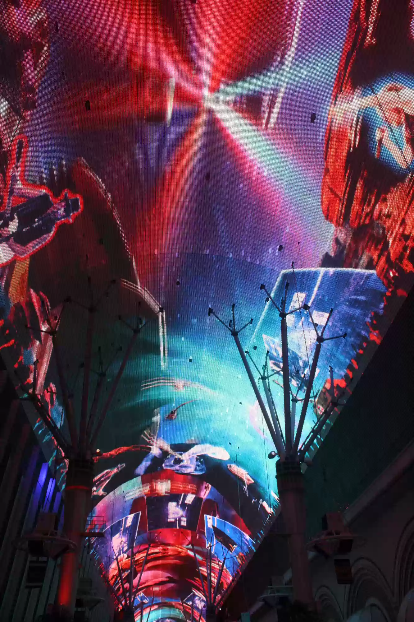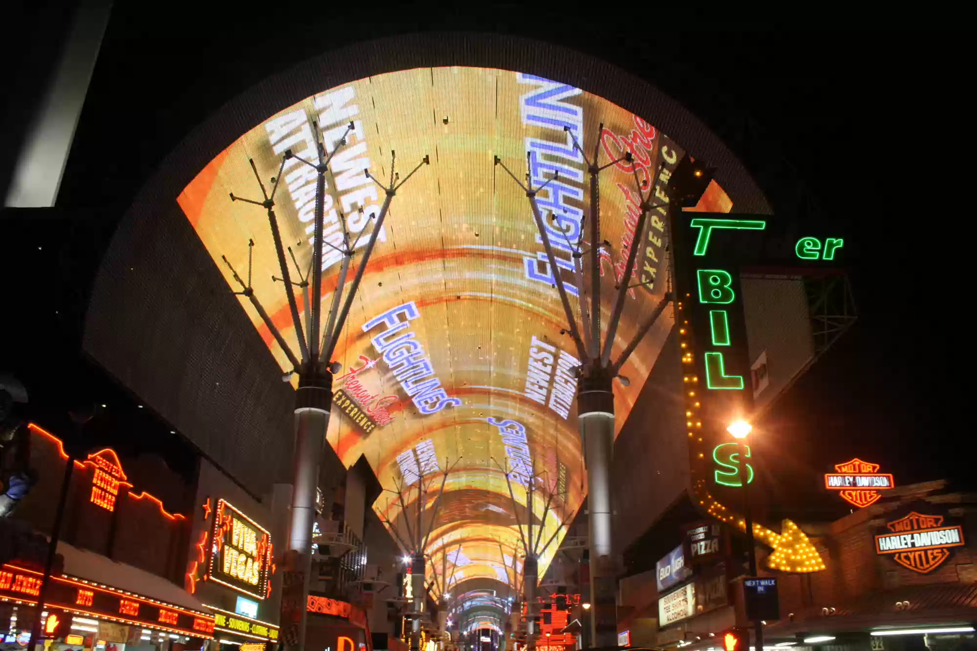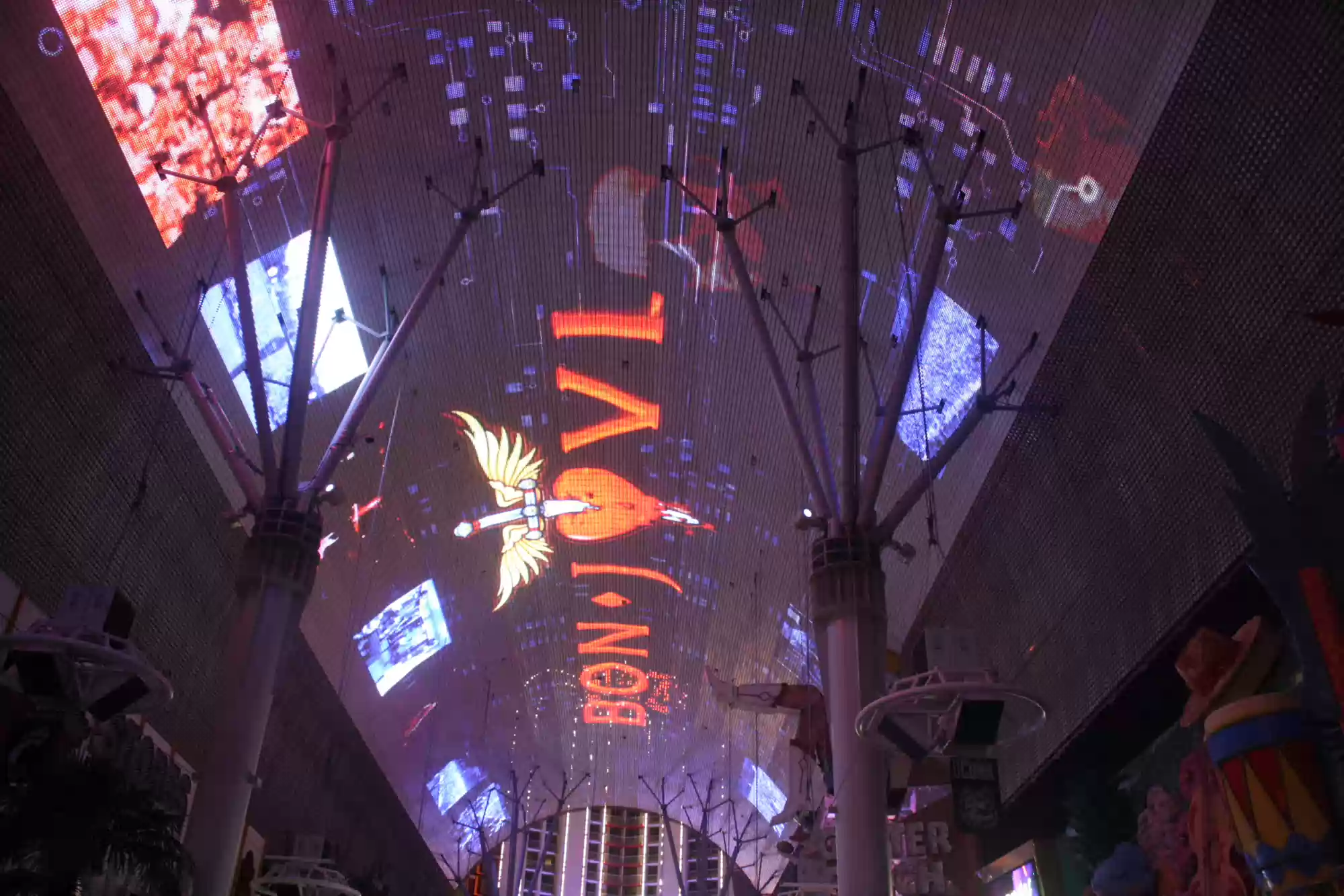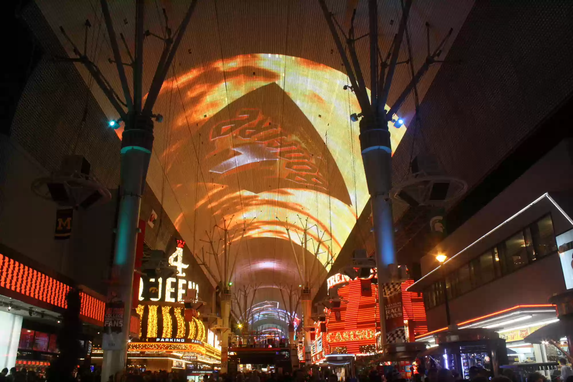 Fremont street. Fremont street. The roof is used as a giant LED display. CosmopolitanExcalibur Labels