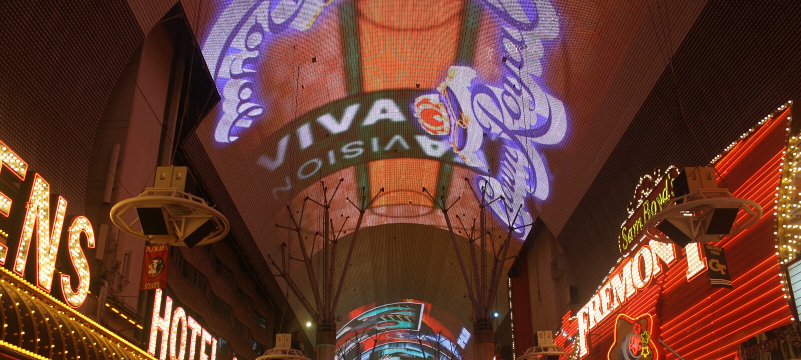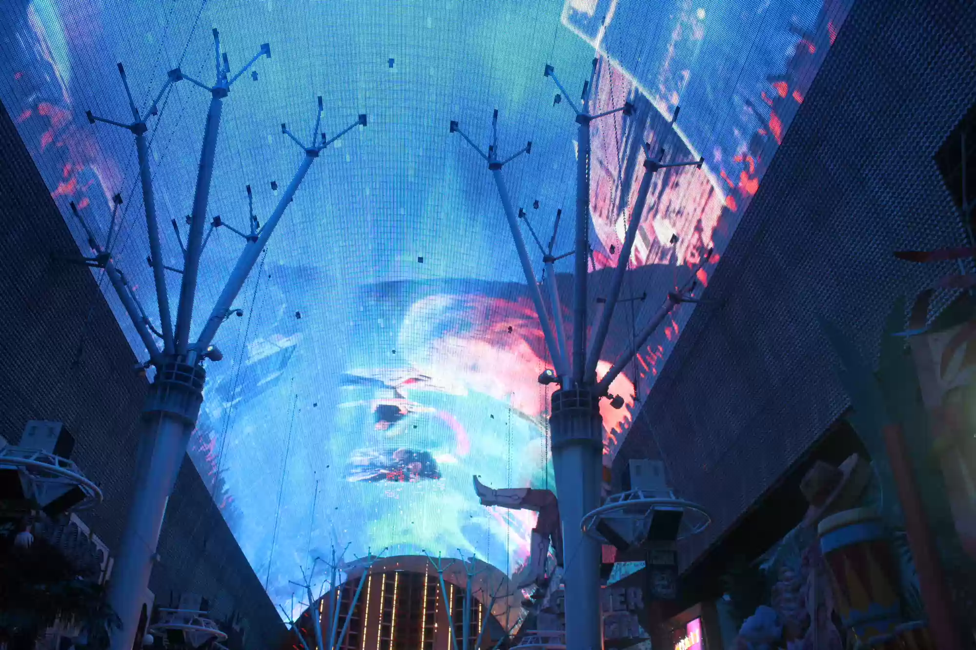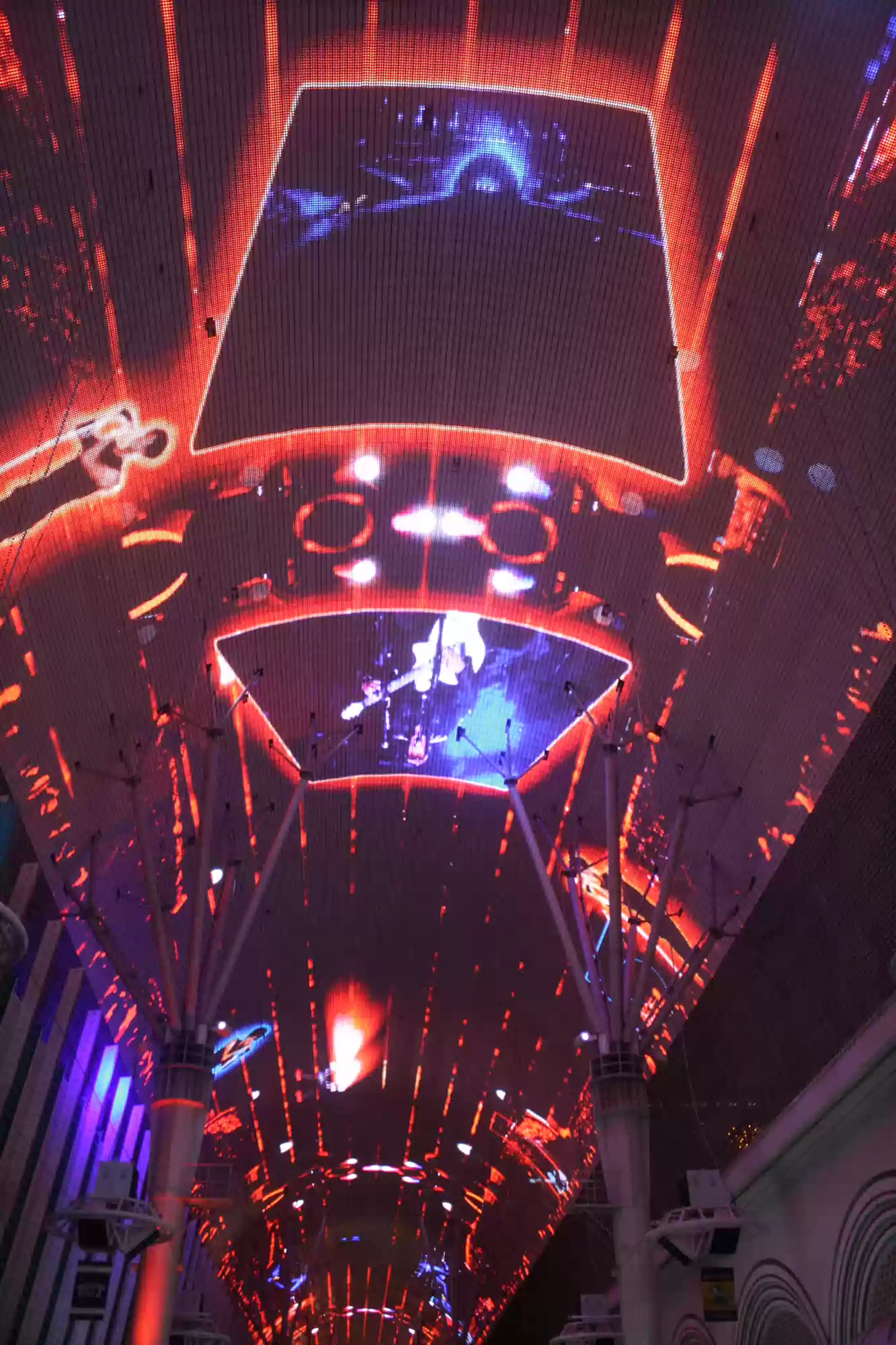 Fremont street. Fremont street. The roof is used as a giant LED display. CosmopolitanExcalibur Labels