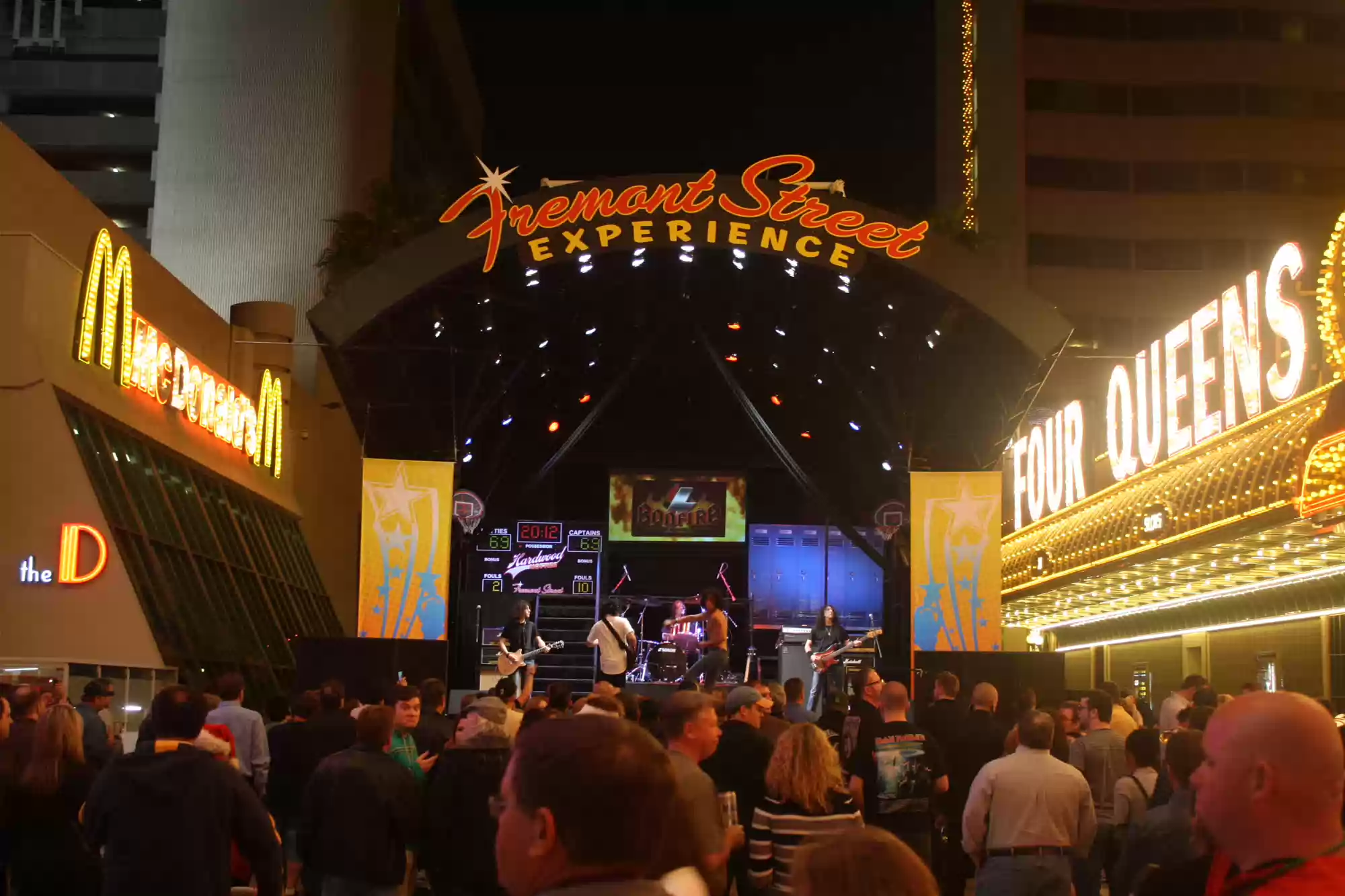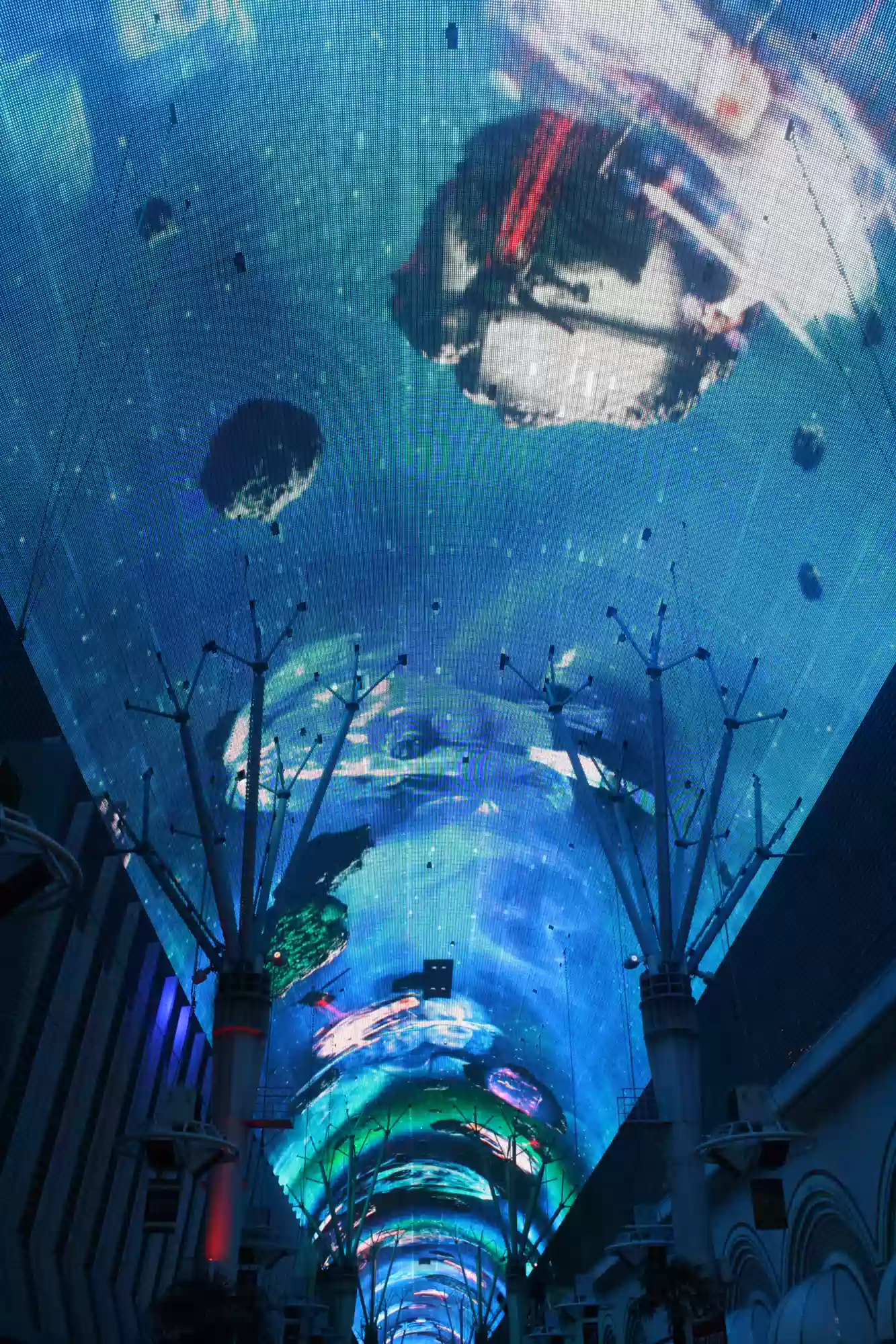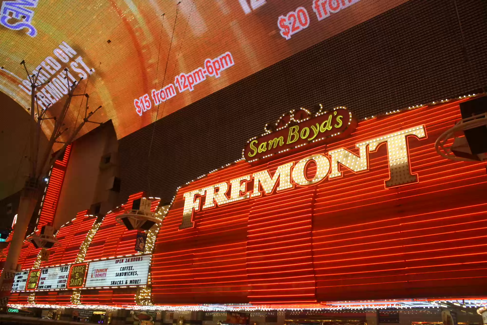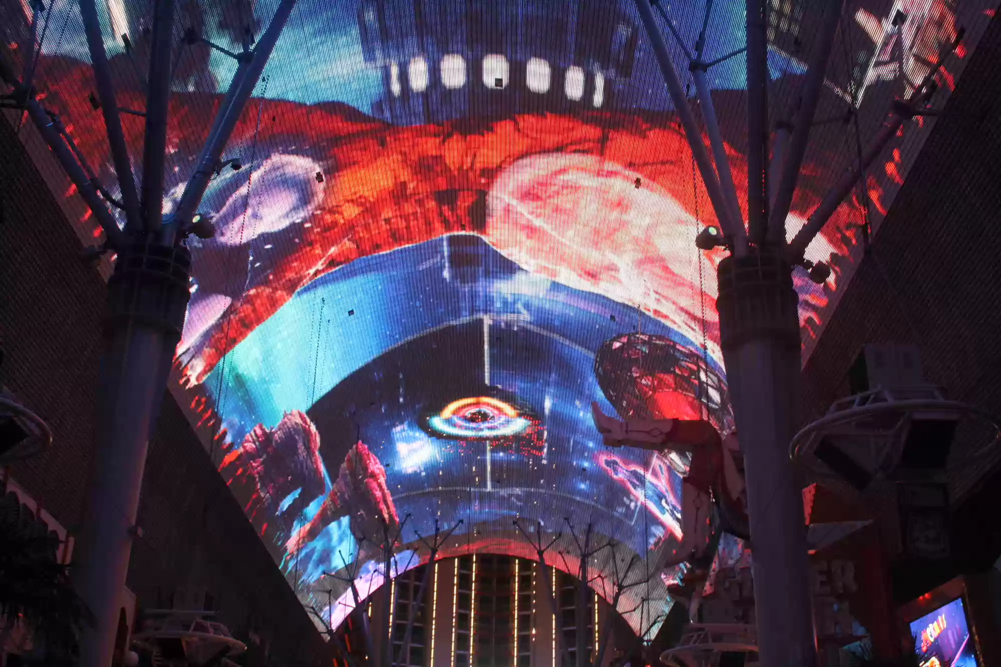 Fremont street. Fremont street. The roof is used as a giant LED display. CosmopolitanExcalibur Labels