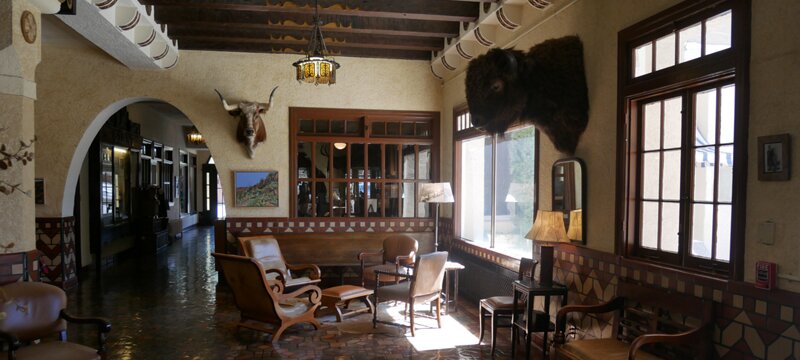 El Paisano hotel, named for the nearby Paisano mountain pass, built in 1930 in anticipation of a local oil boom that never materialized. . Courtyard. Courtyard. Chinati Foundation Labels