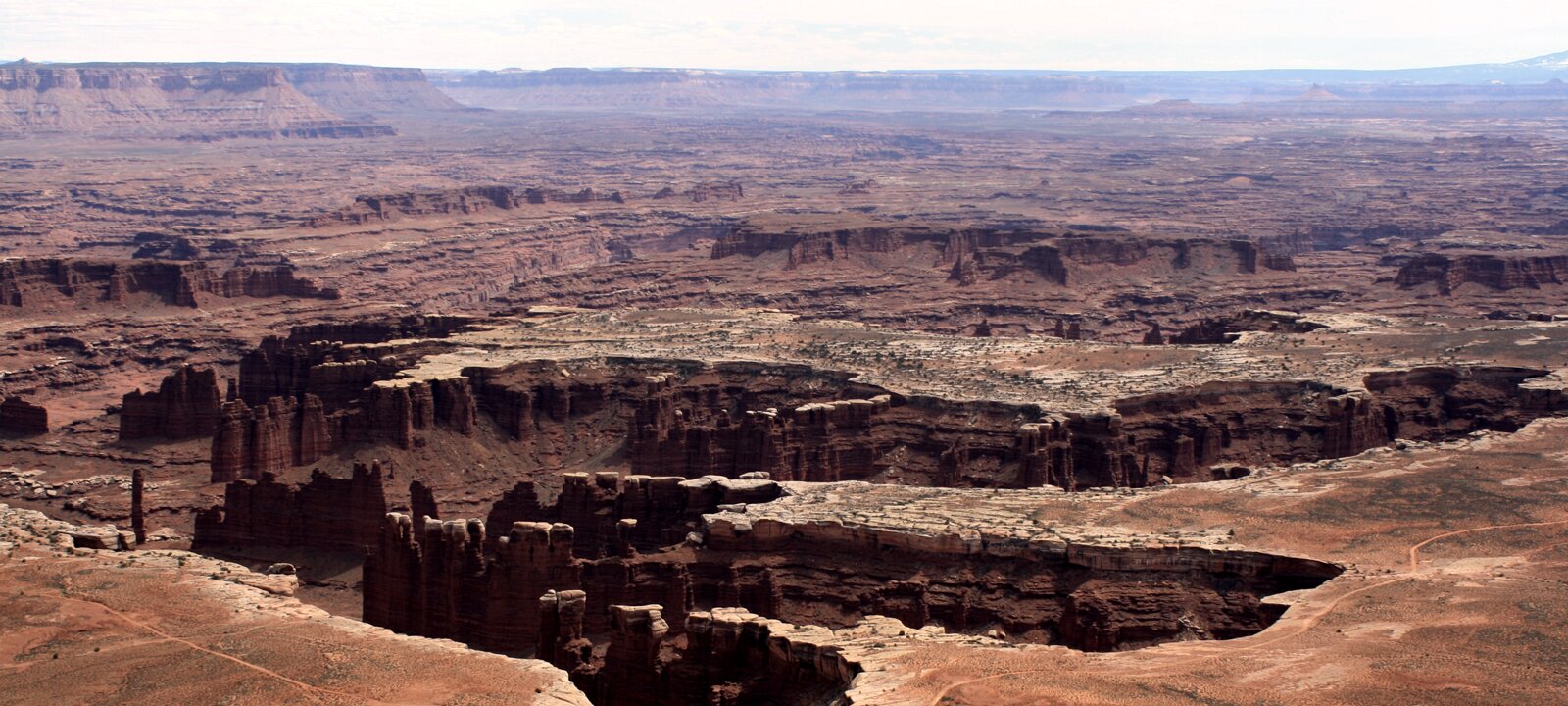 Grand View Point overlook, elevation 1850m. Canyonlands Needles. Buck Canyon OverlookGreen River Overlook Labels